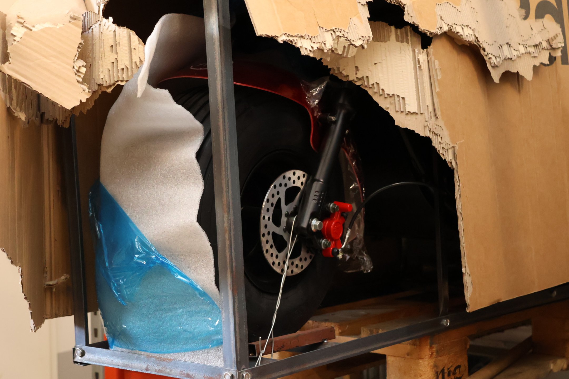 - Sähköskootterin mukana tulevassa laturissa on puutteita, ja sitä ei saa käyttää, uusi hyväksytty laturi sisältyy (valkoinen laatikko)