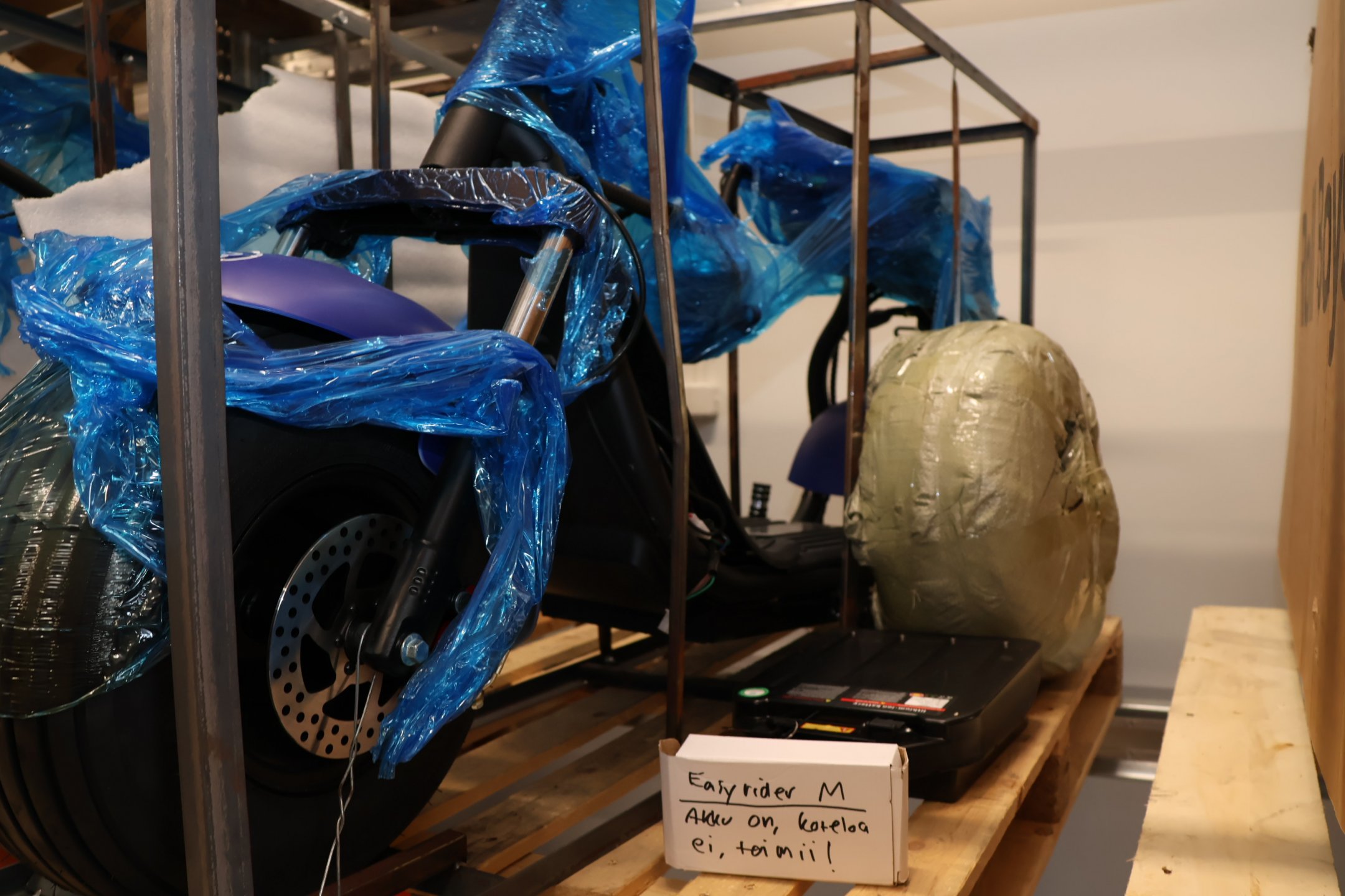 - Sähköskootterin mukana tulevassa laturissa on puutteita, ja sitä ei saa käyttää, uusi hyväksytty laturi sisältyy (valkoinen laatikko)