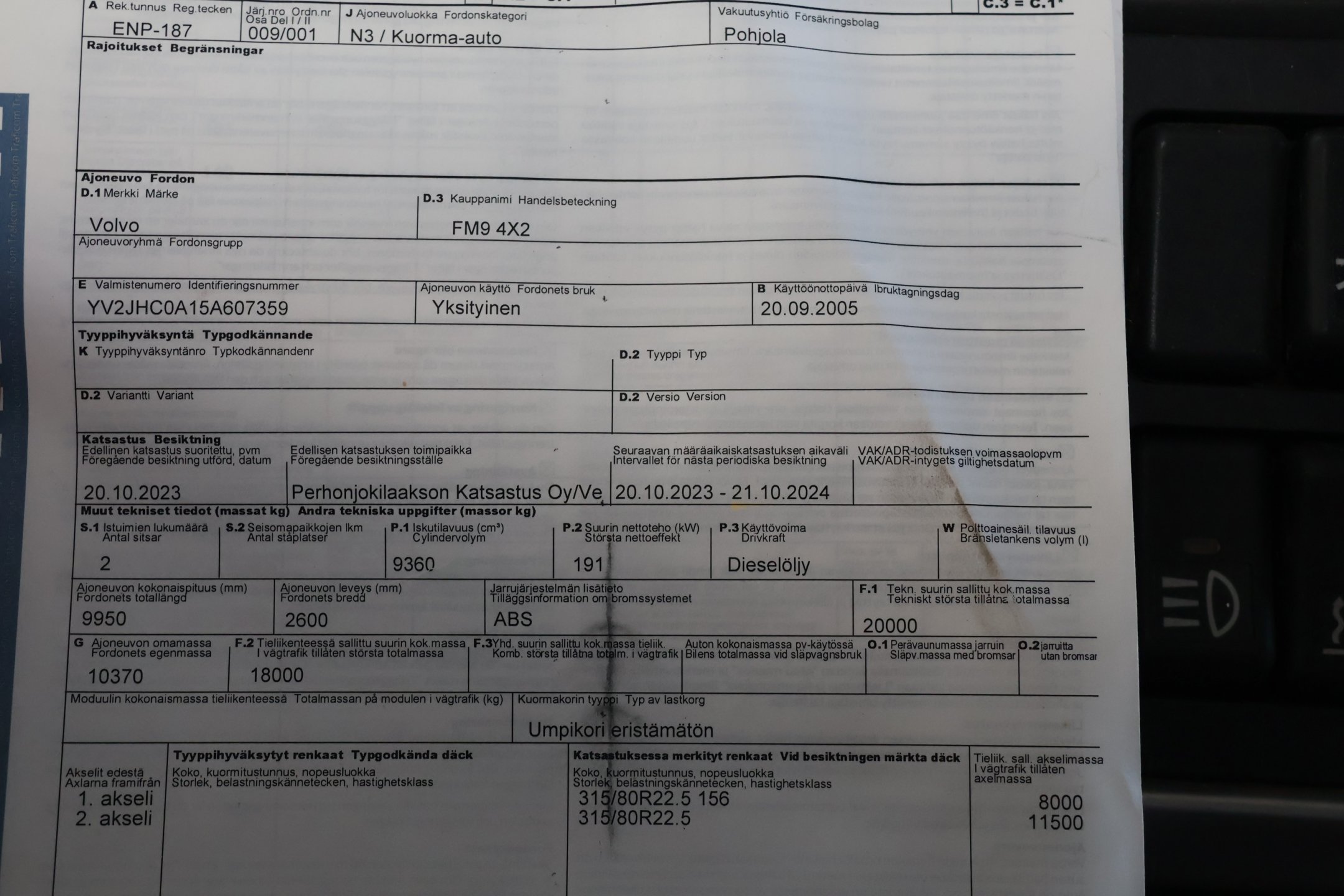 - Viimeinen katsastus tehty 20.10.2023