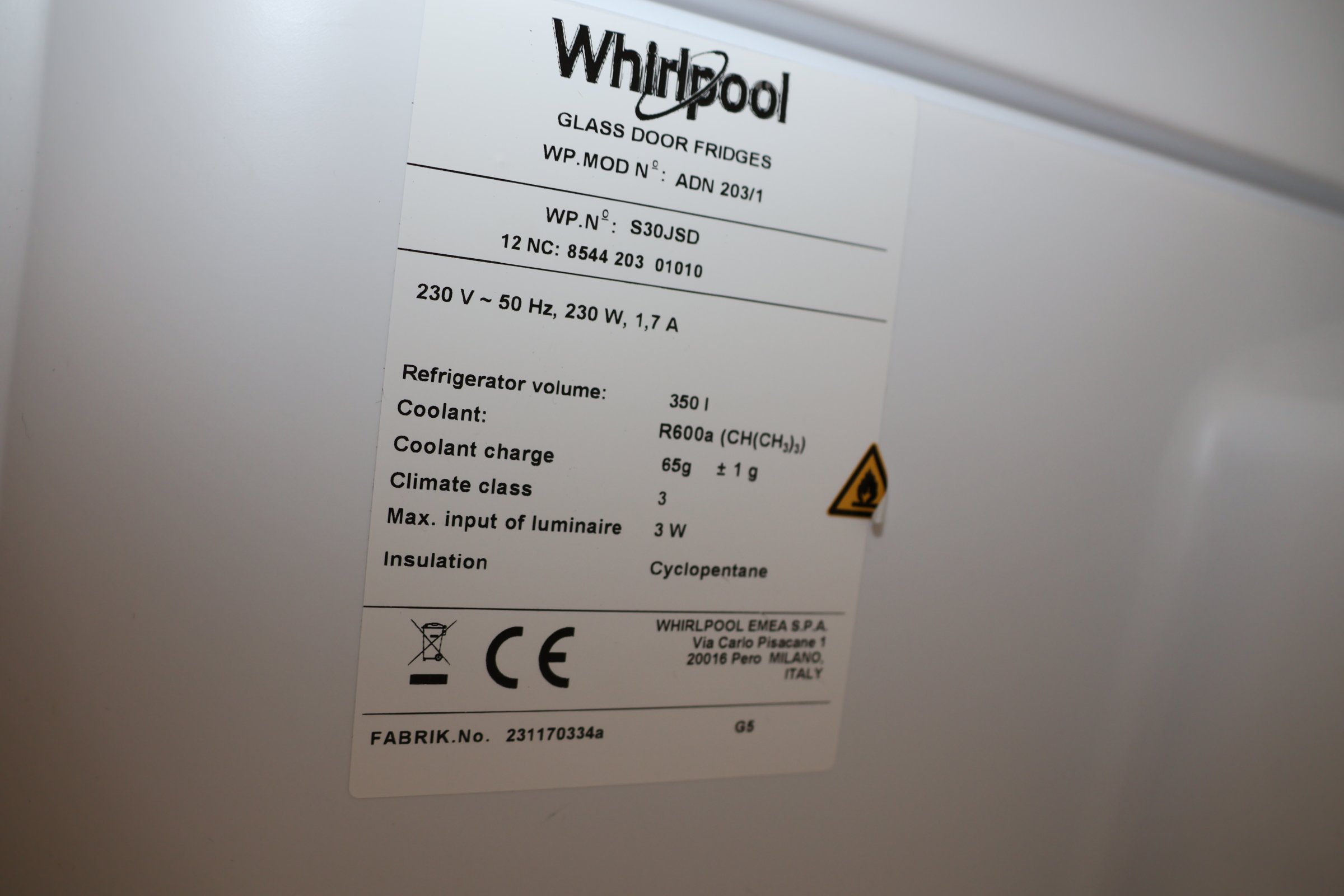 3 kpl Whirlpool jääkaappia