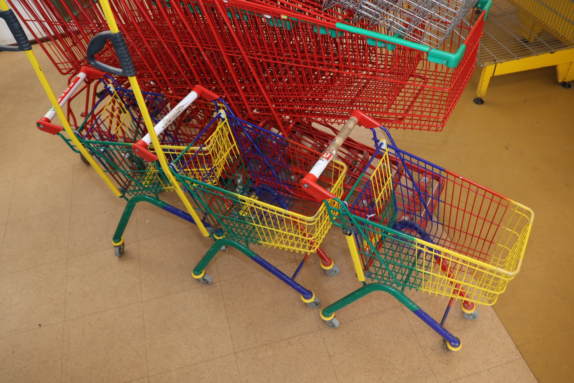- Kaikki kauppakärryt ja korit kuvissa sisältyvät