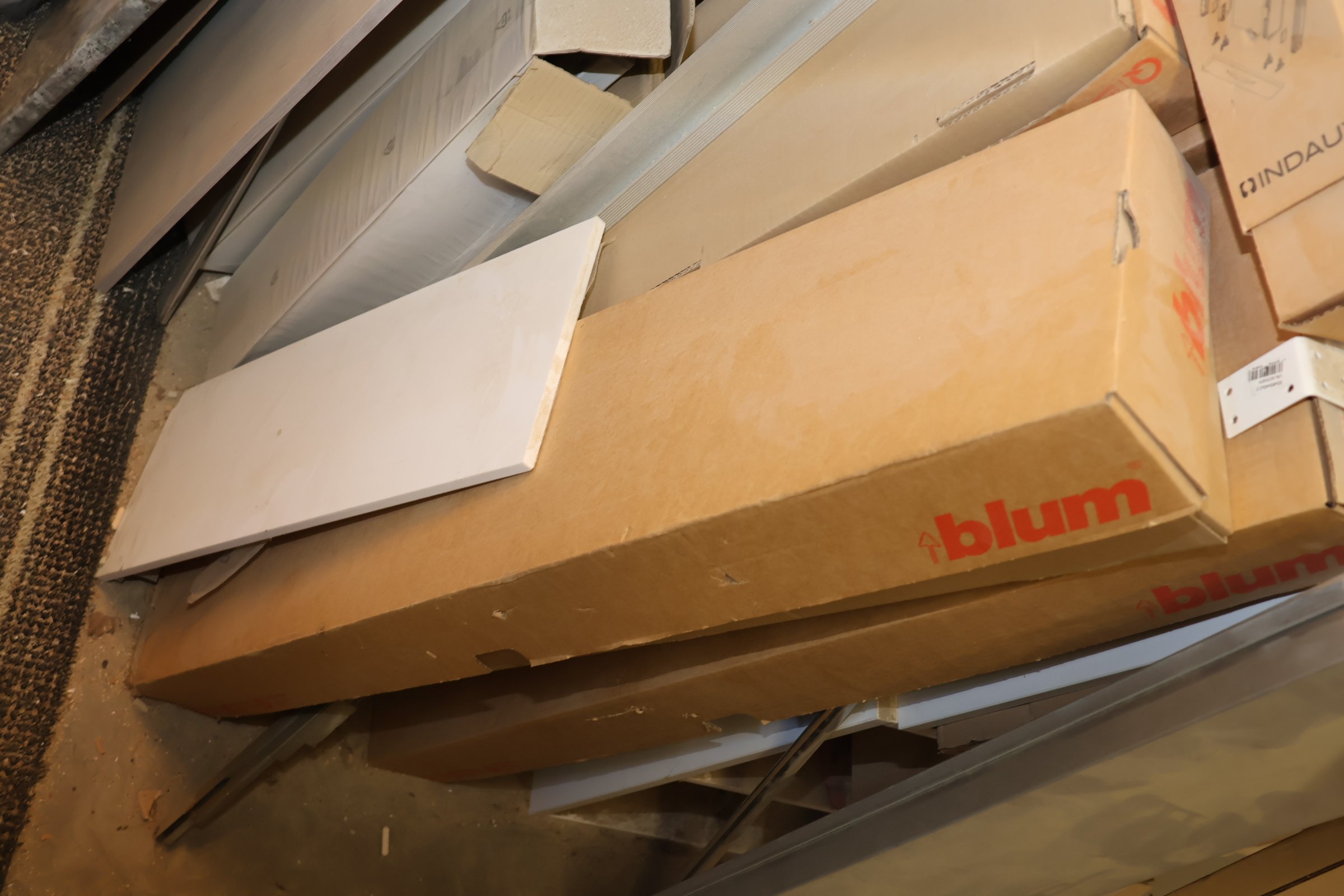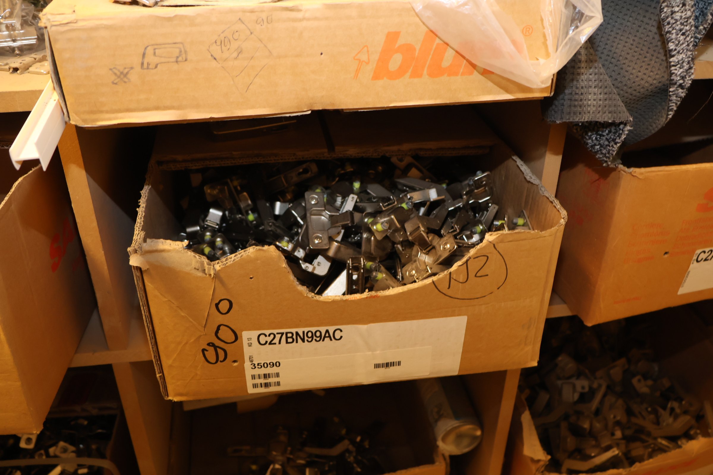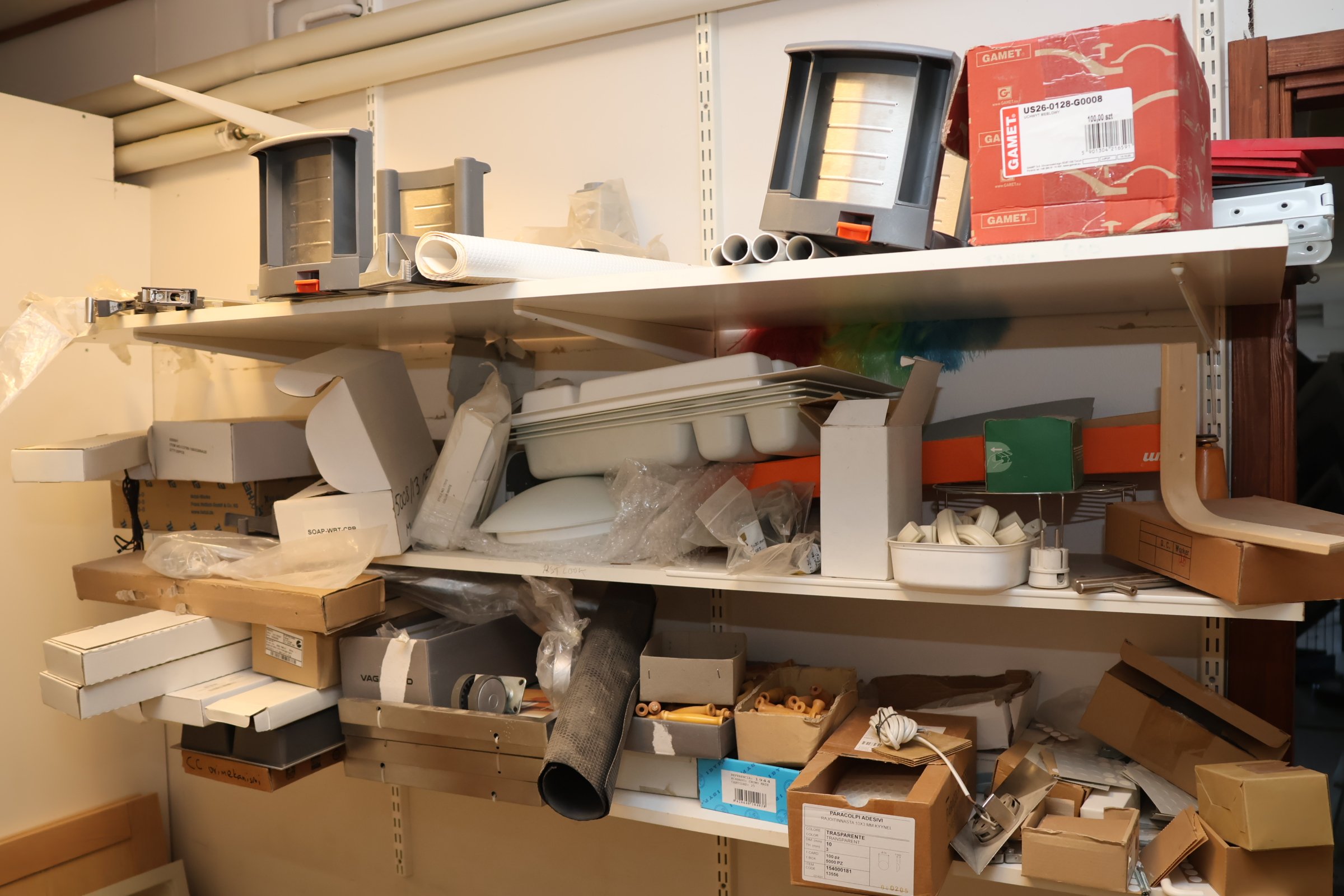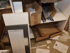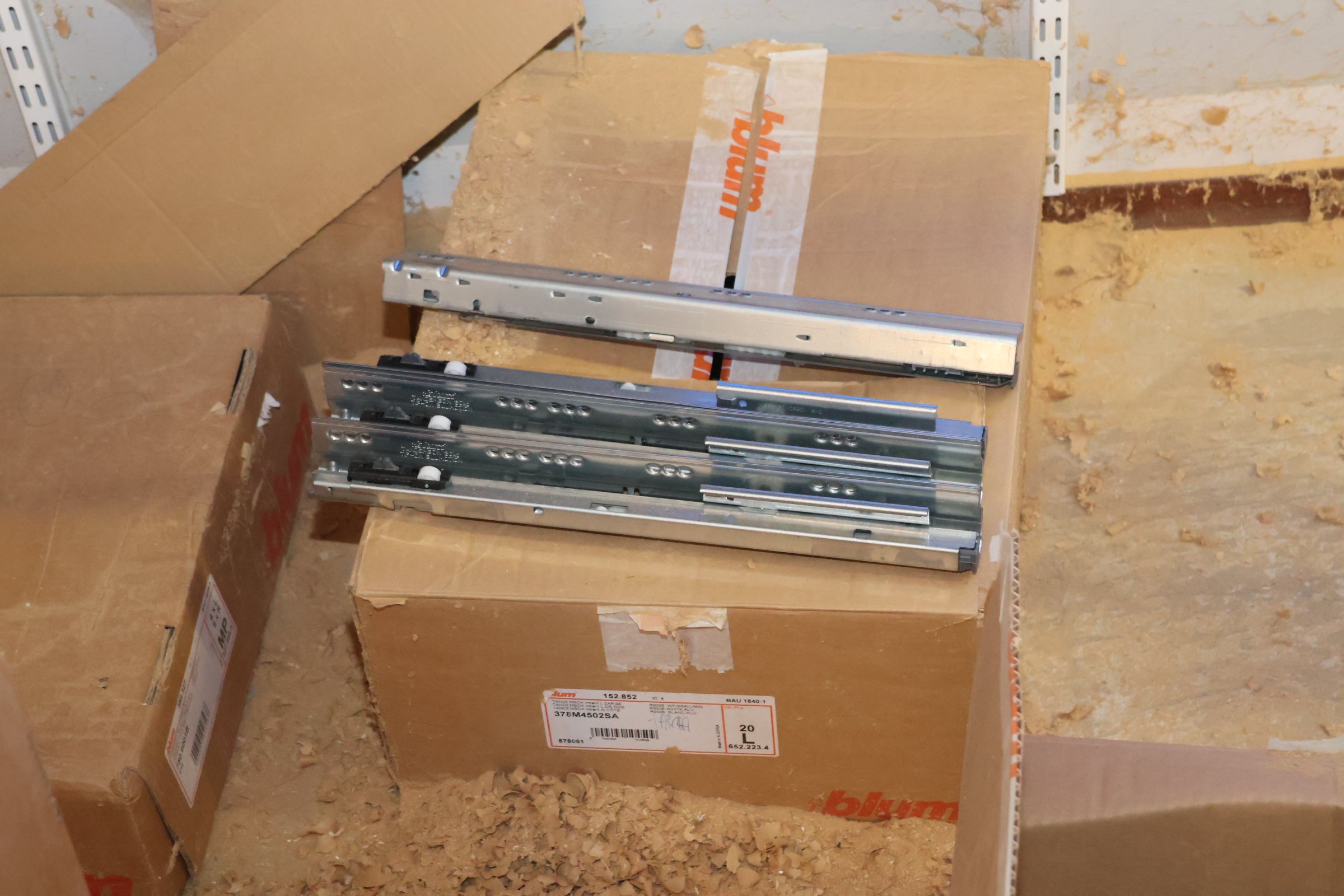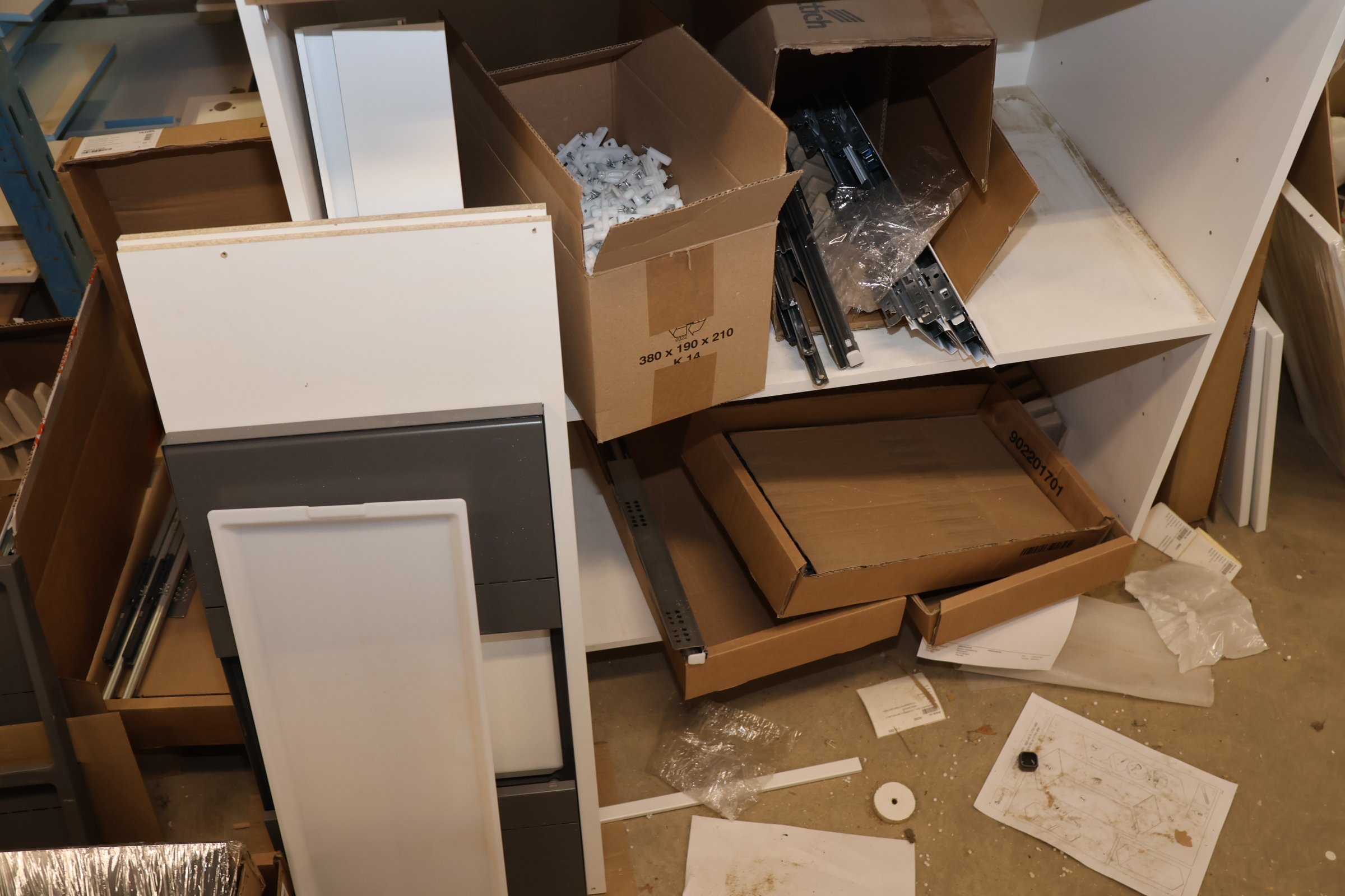 Keittiökaappien saranoita, kiskoja, laatikoita, tarvikkeita y.m.
