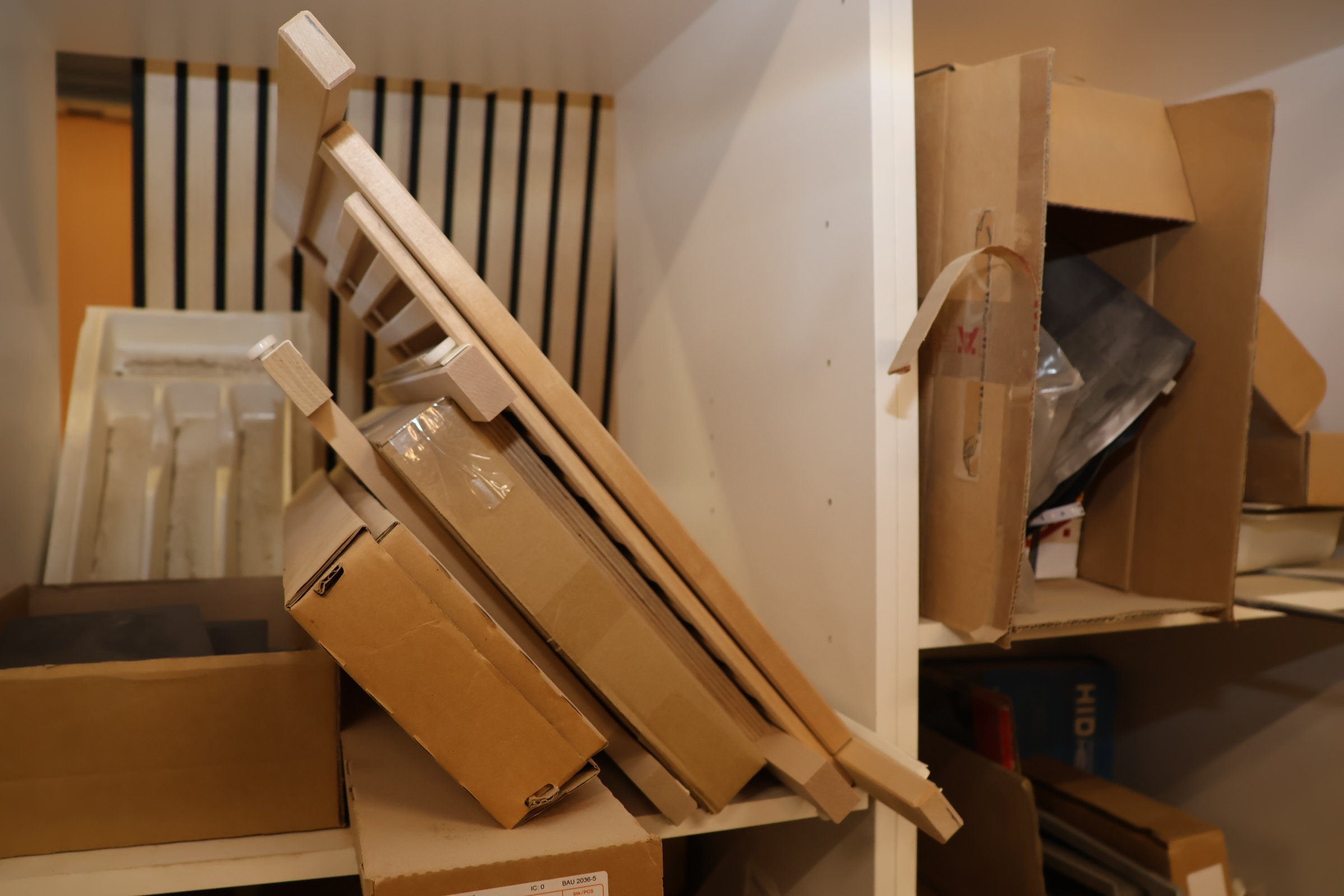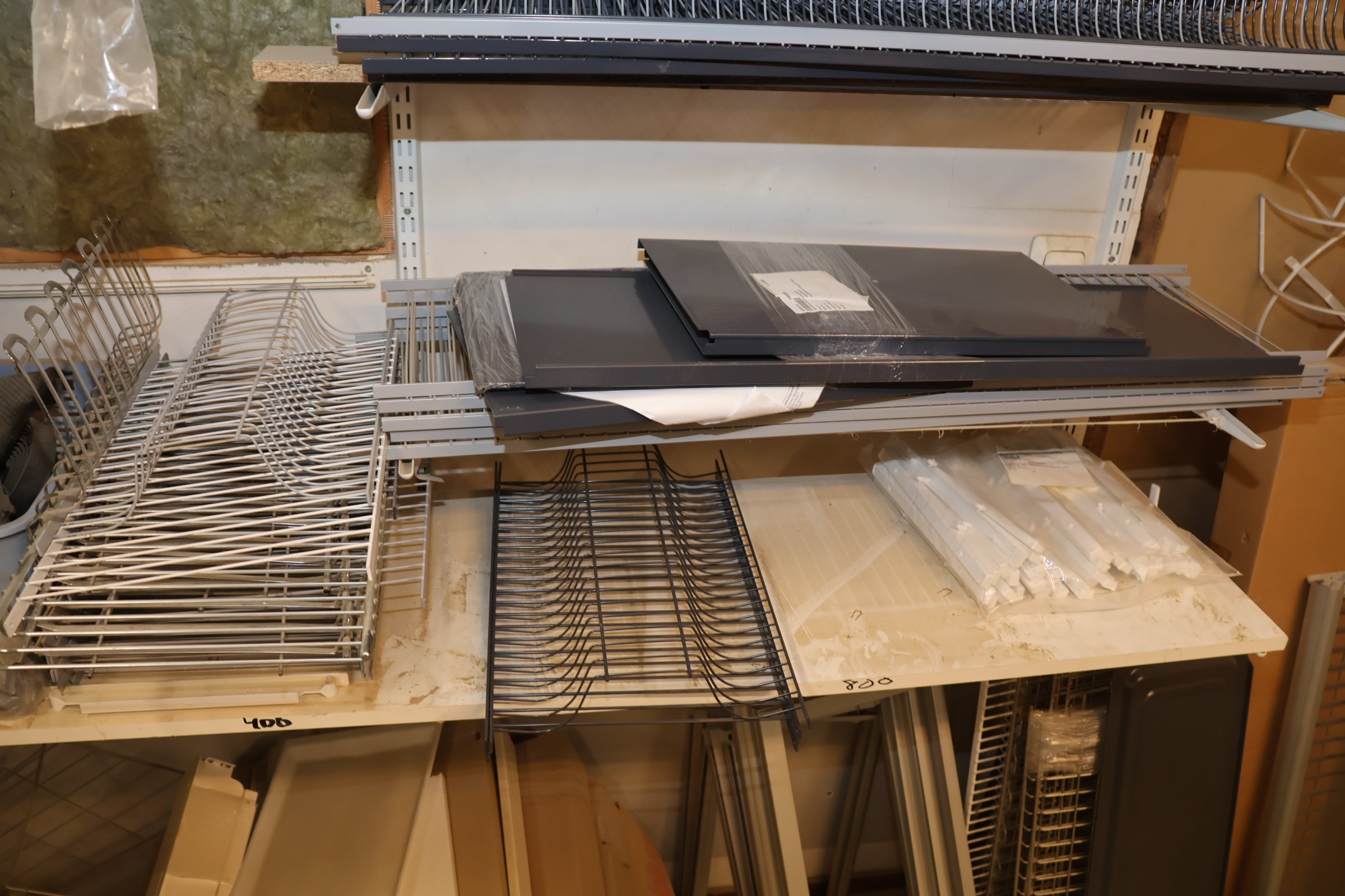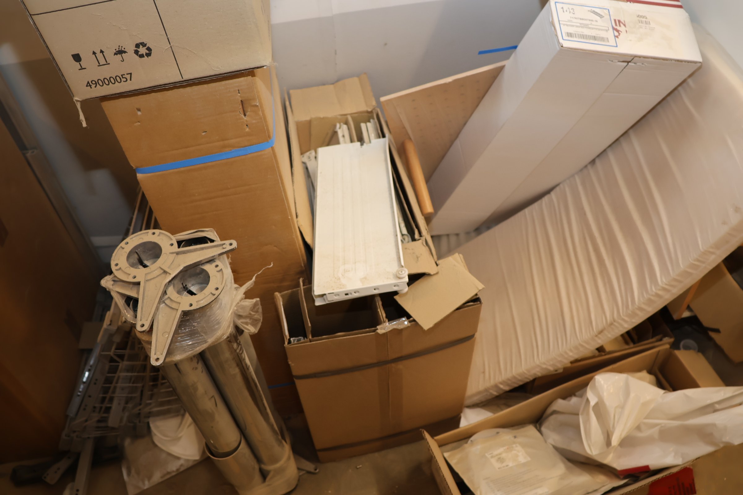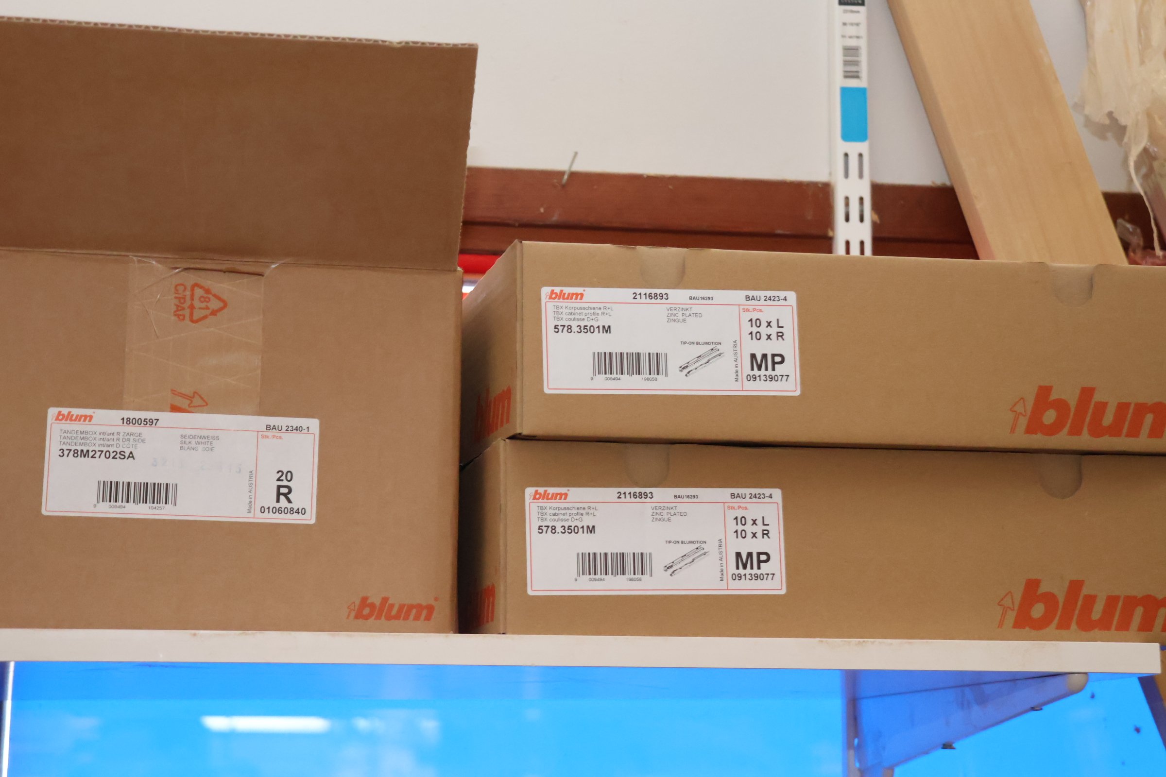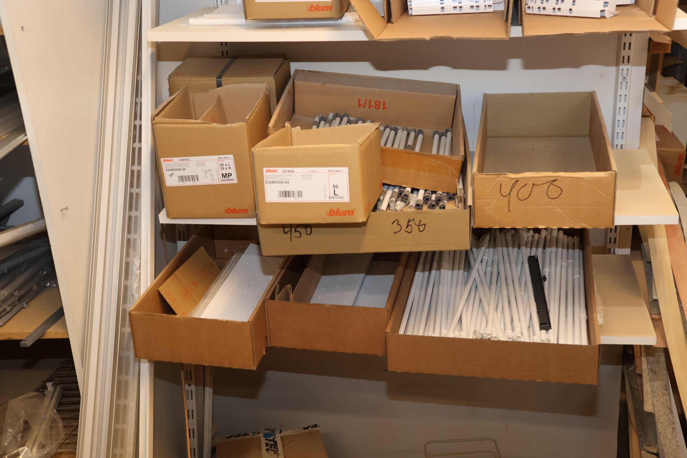 Keittiökaappien saranoita, kiskoja, laatikoita, tarvikkeita y.m.