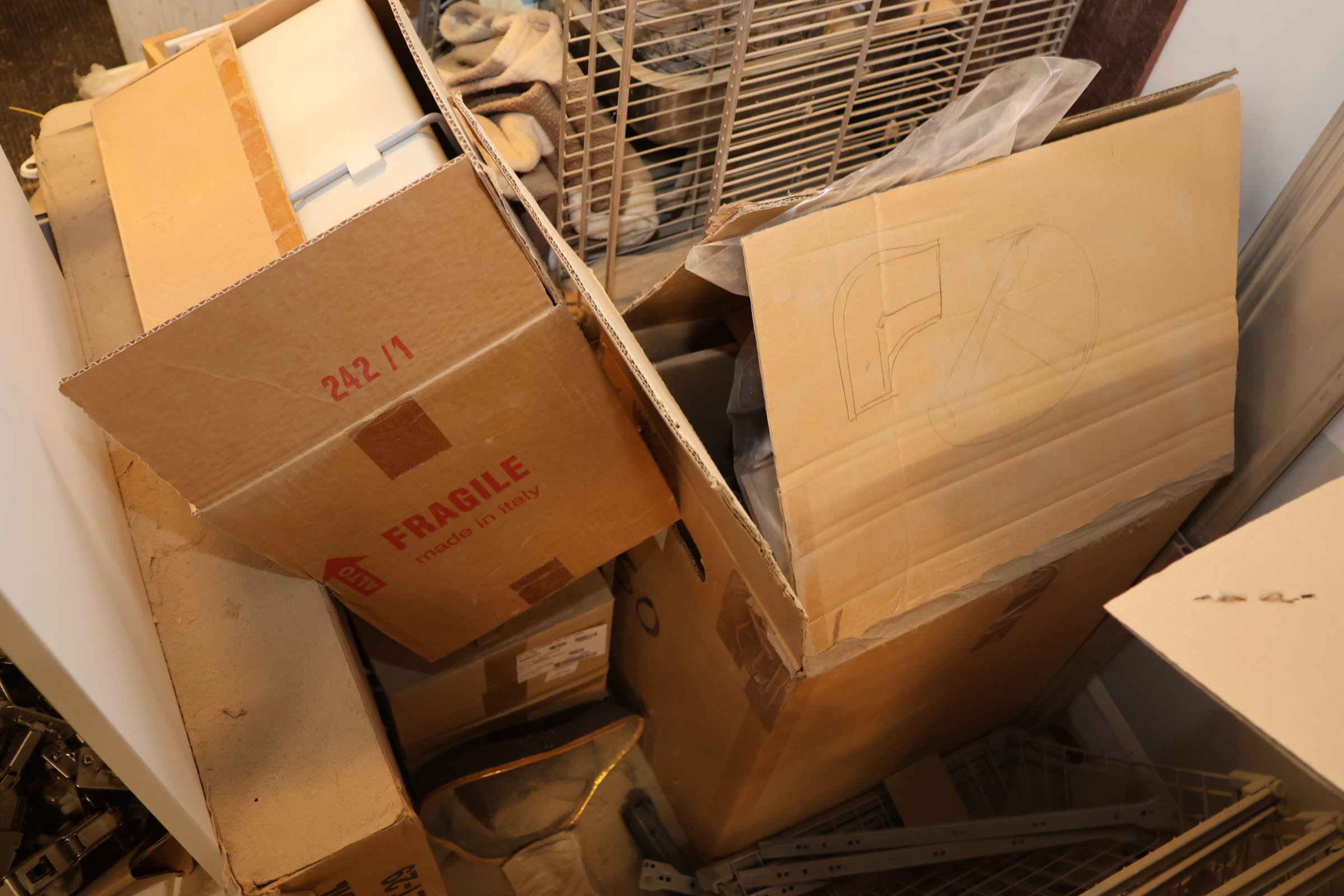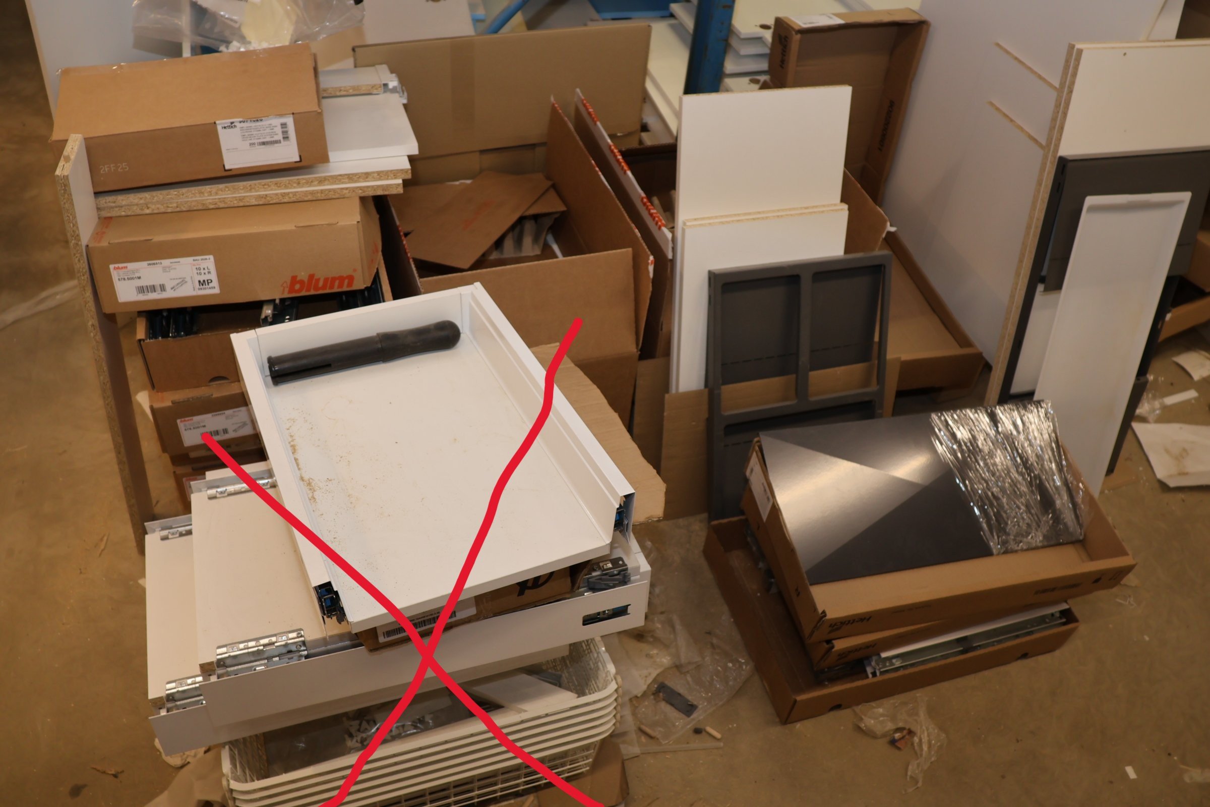 Keittiökaappien saranoita, kiskoja, laatikoita y.m. / Kohdenumero 69-26