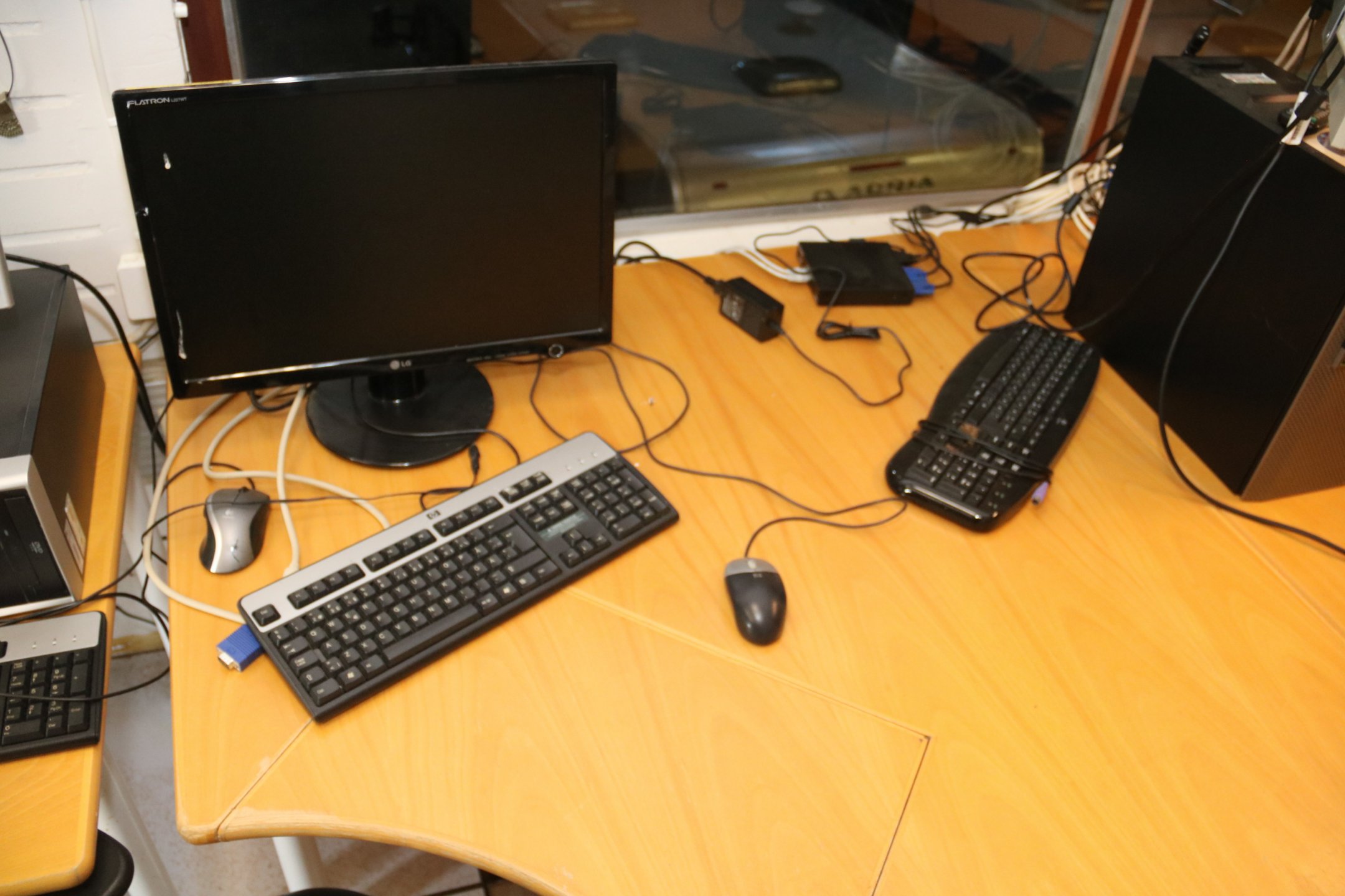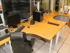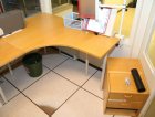 3 kpl kirjoituspöytää, 1 pöytä, laatikosto y.m.