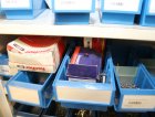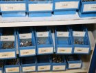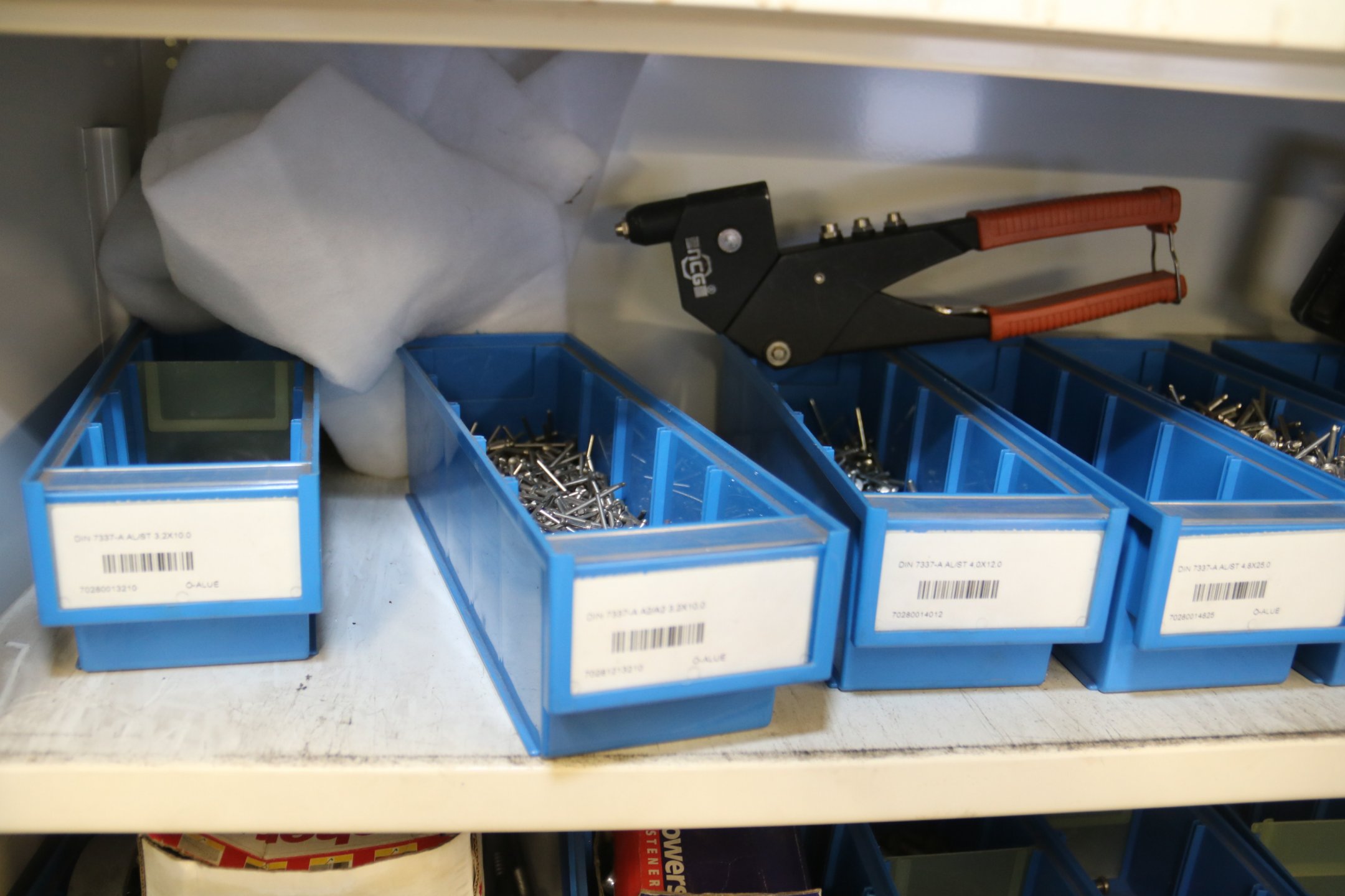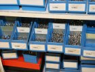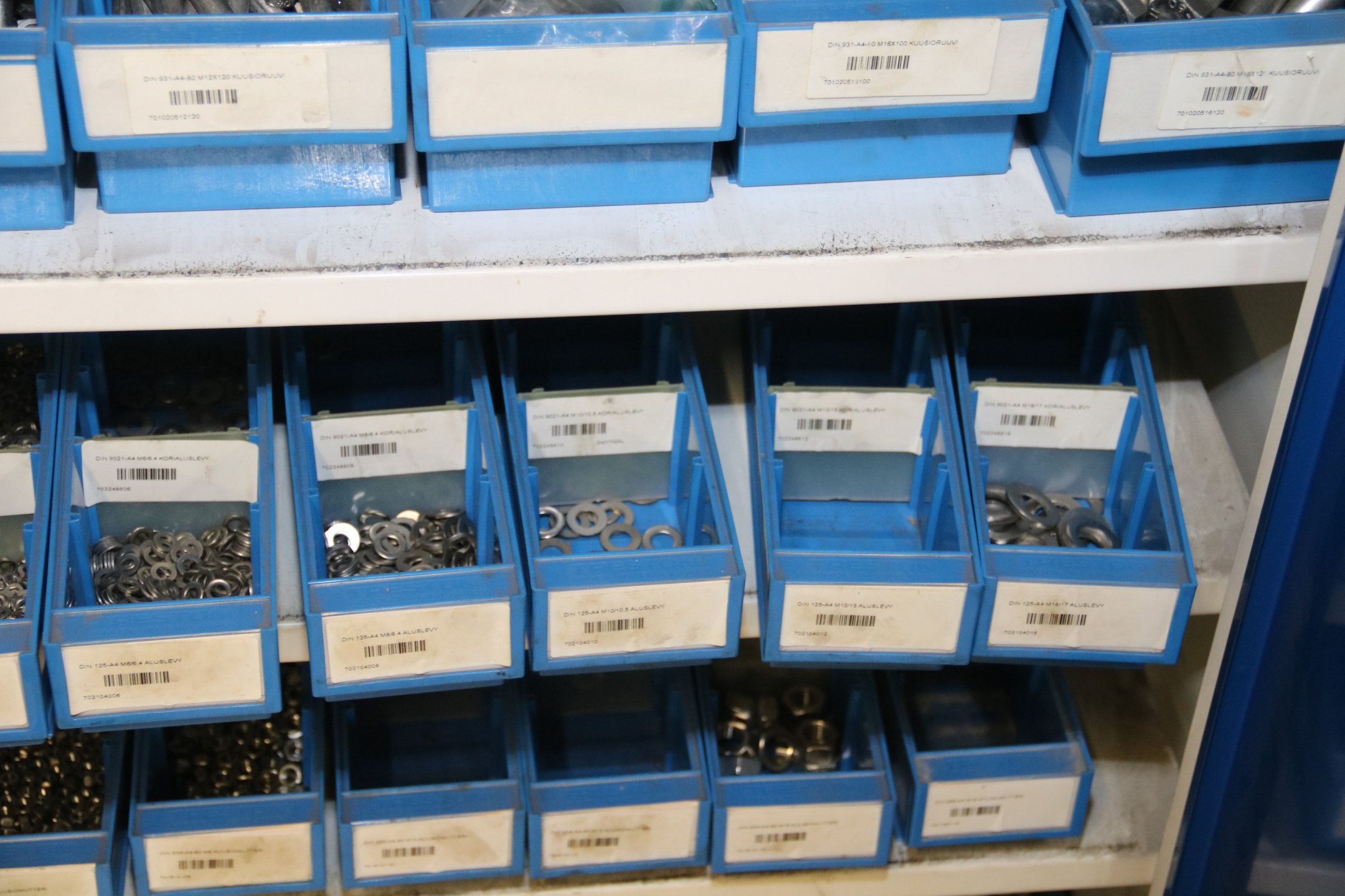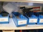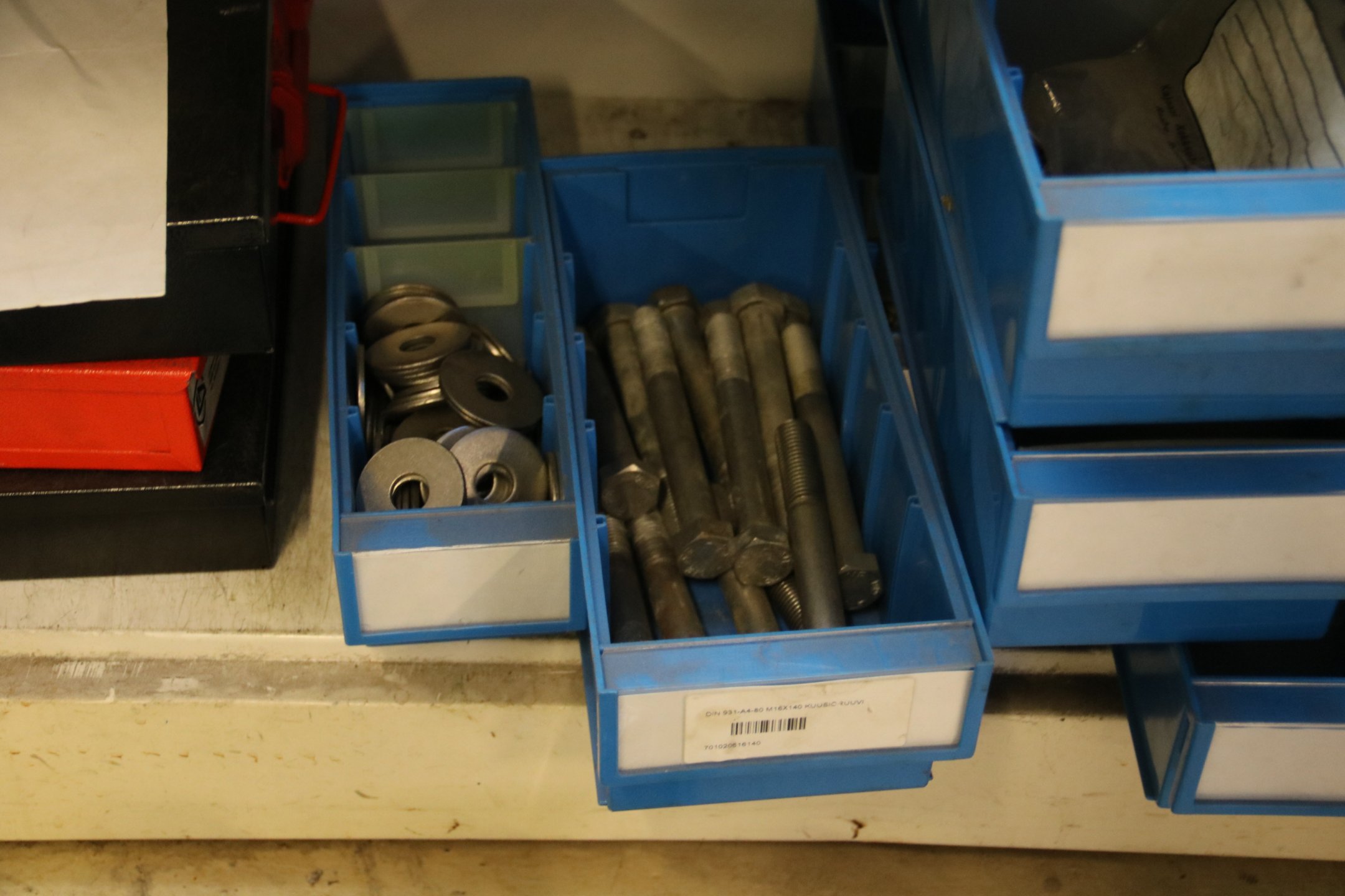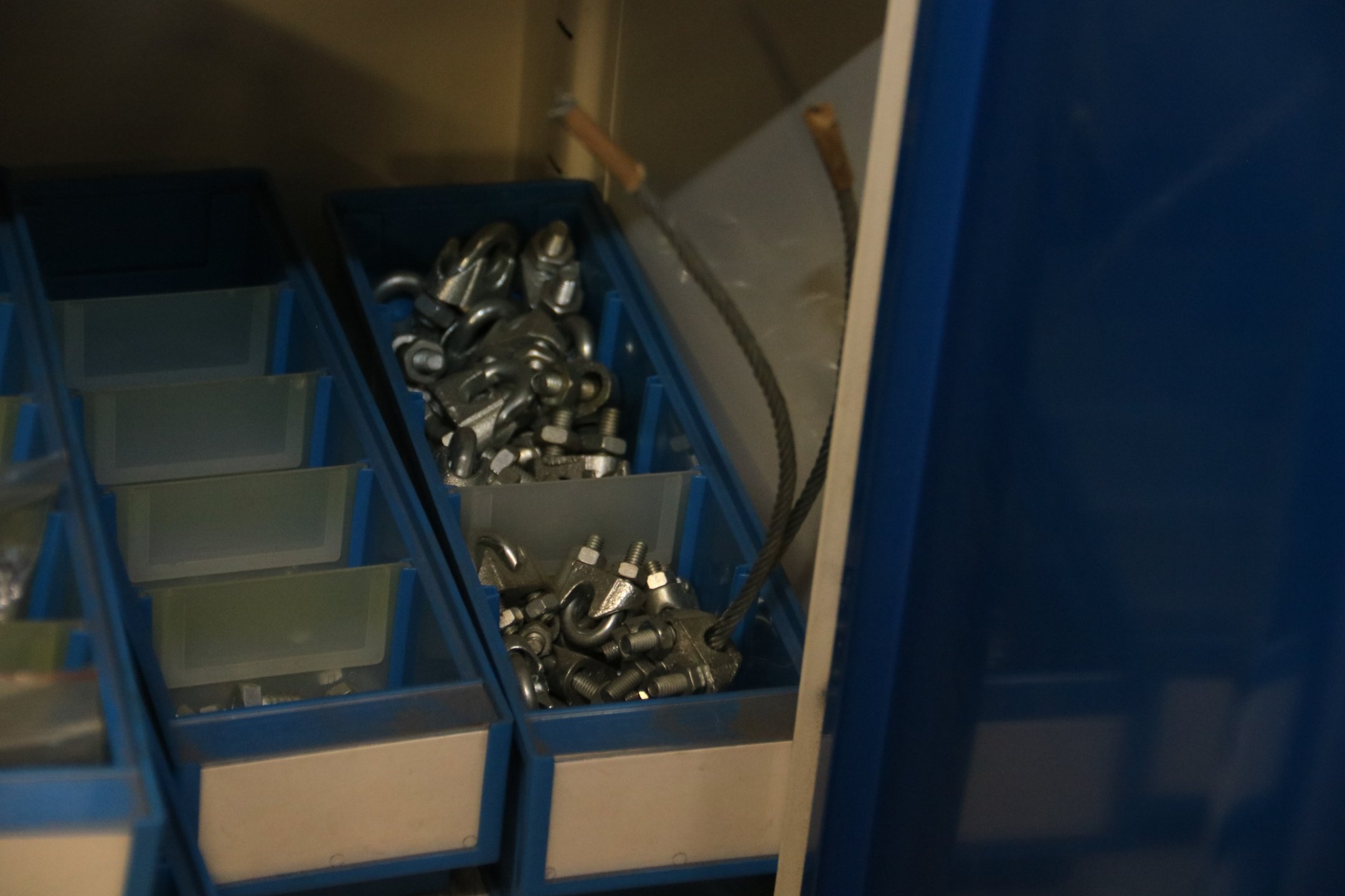 Peltikaappi jossa suurin osa ruostumattomia pultteja, ruuveja y.m.