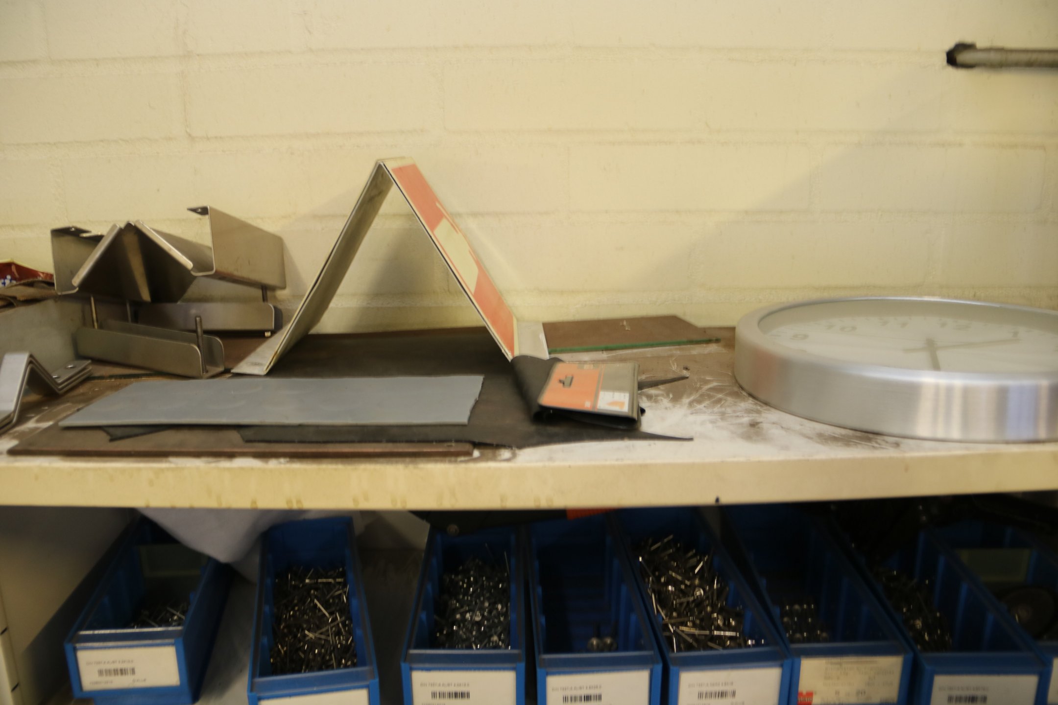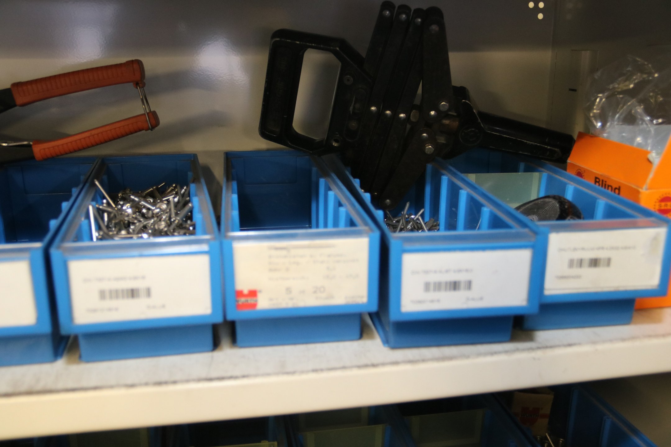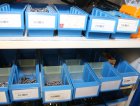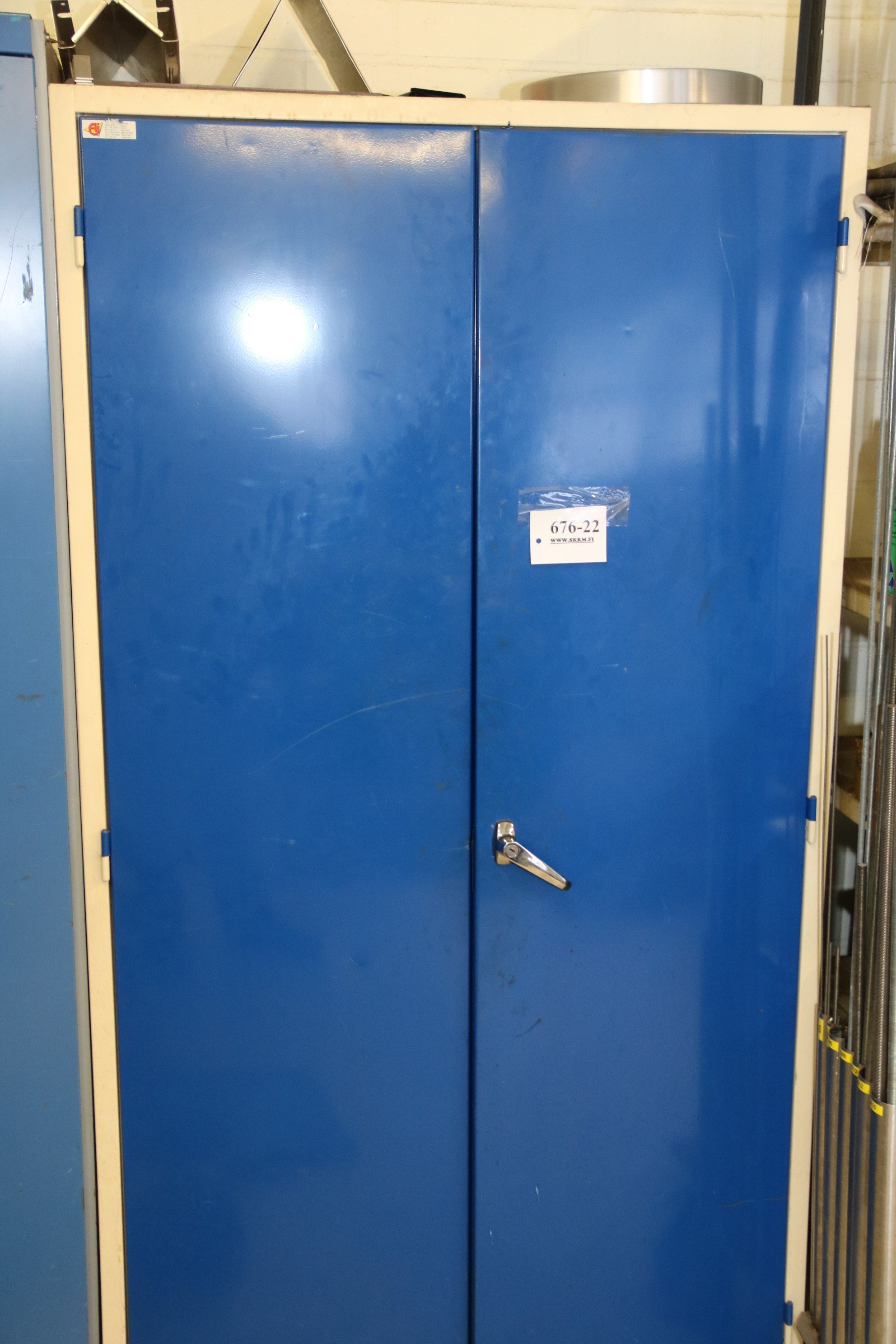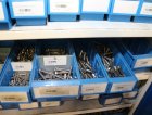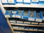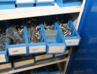 Peltikaappi jossa ruostumattomia pultteja ja ruuveja y.m. / Kohdenumero 676-22