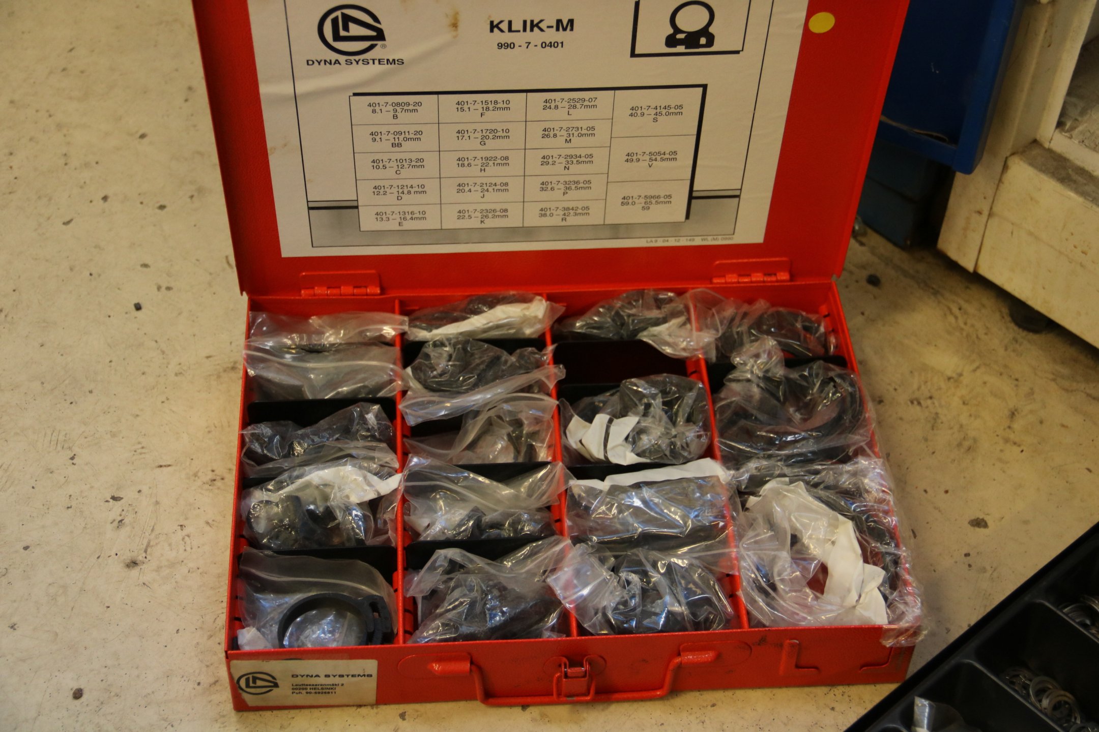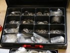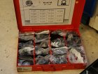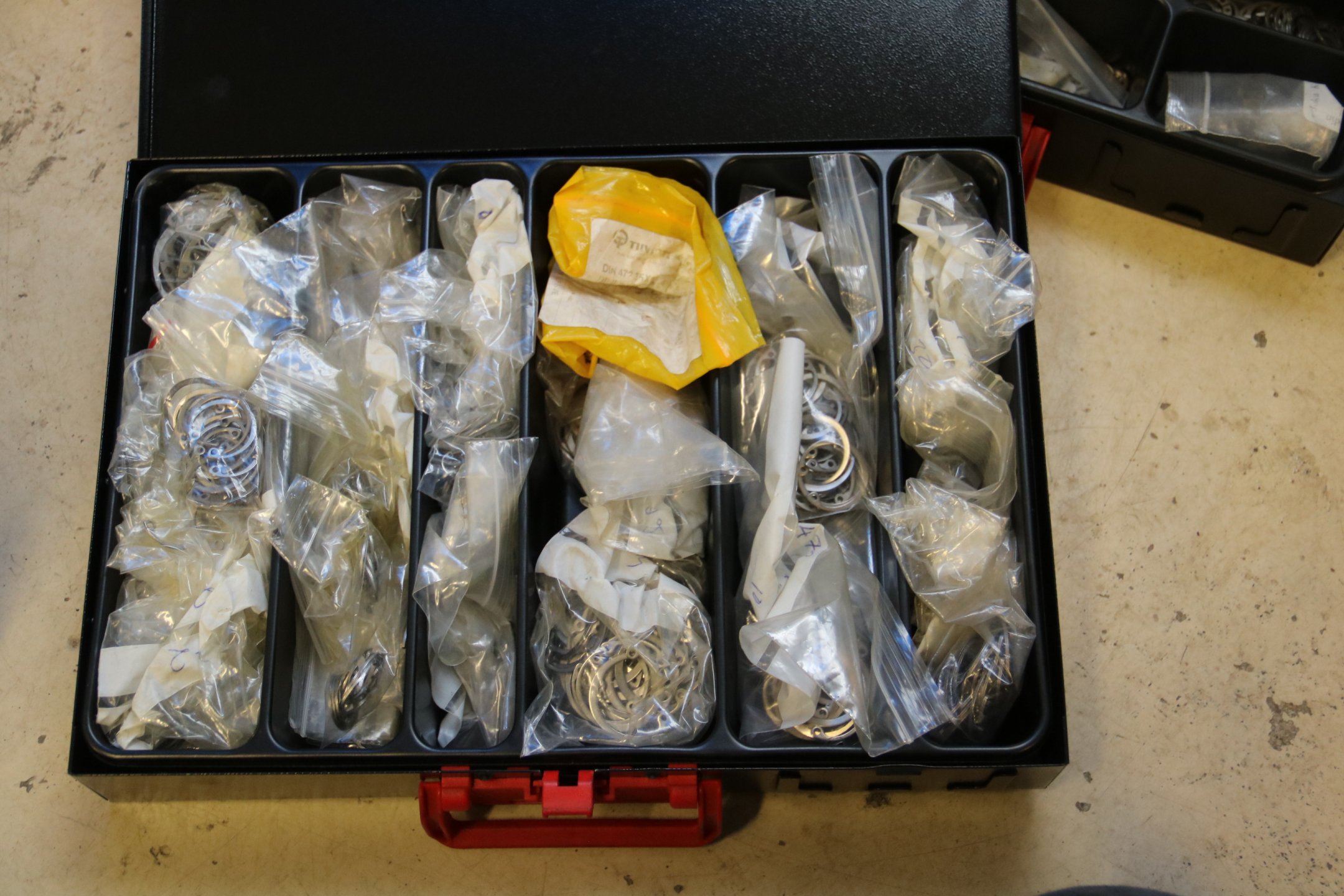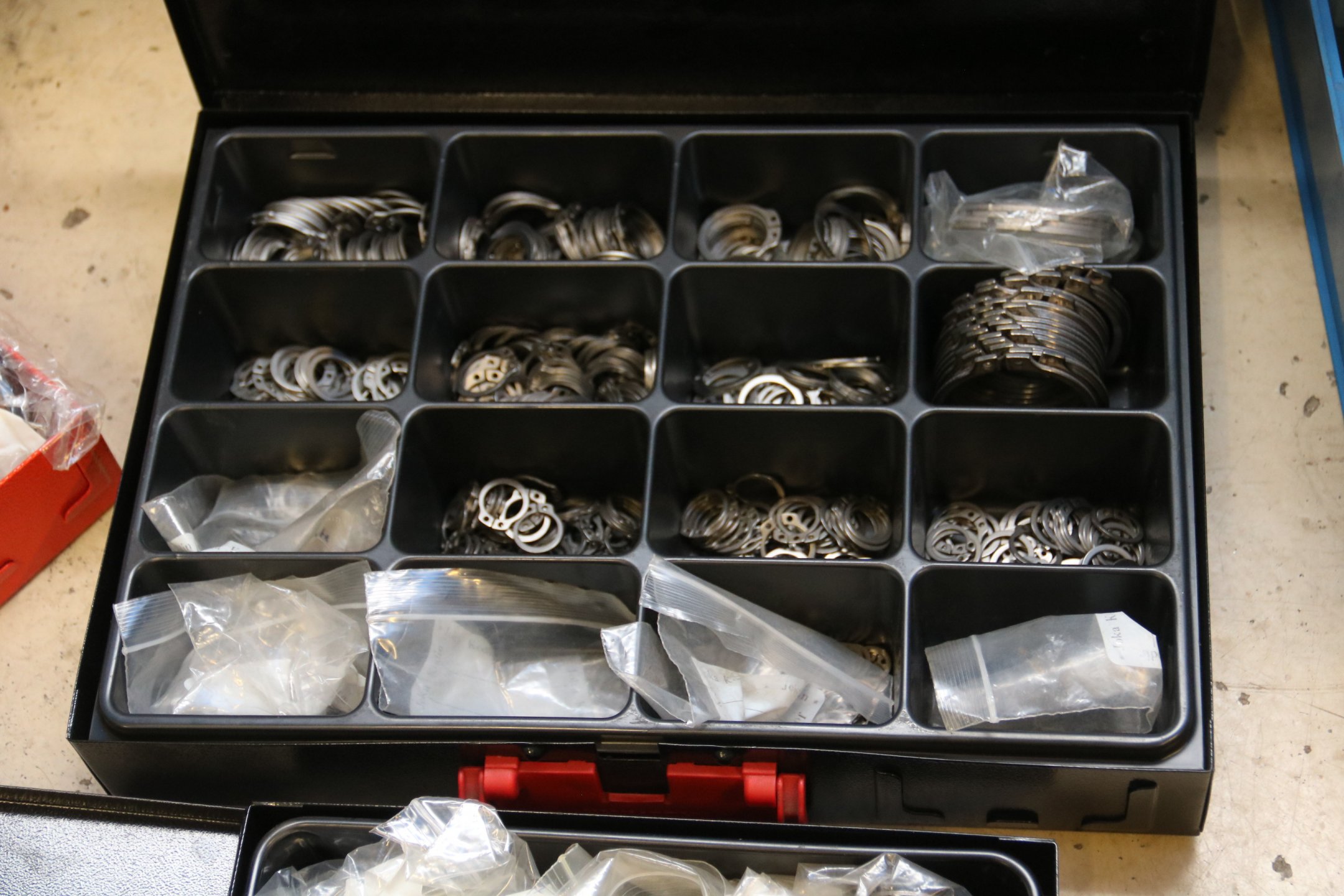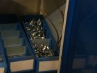 Peltikaappi jossa ruostumattomia pultteja ja ruuveja y.m. / Kohdenumero 676-22