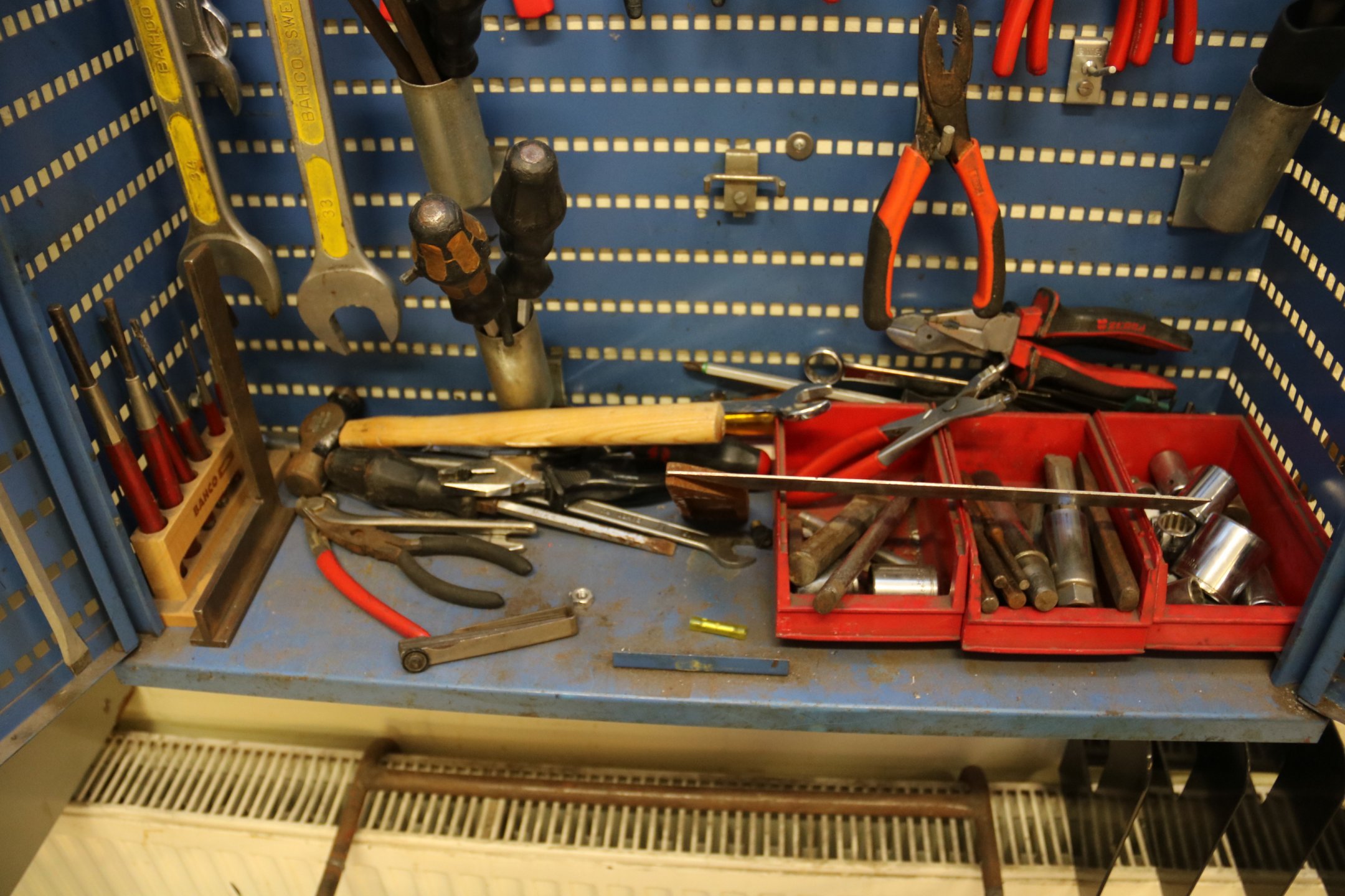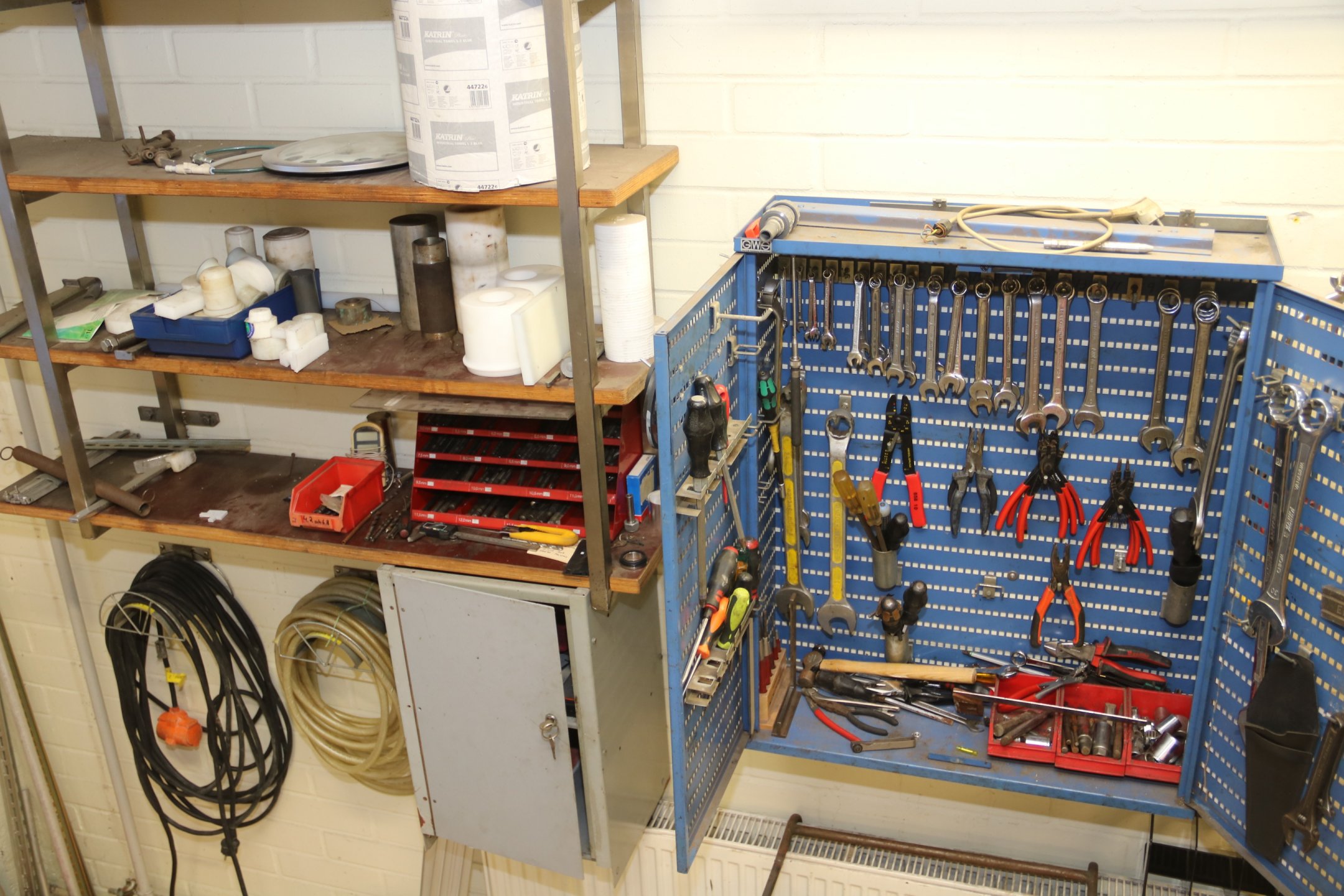 Työkalukaappi, hyllyjä y.m.