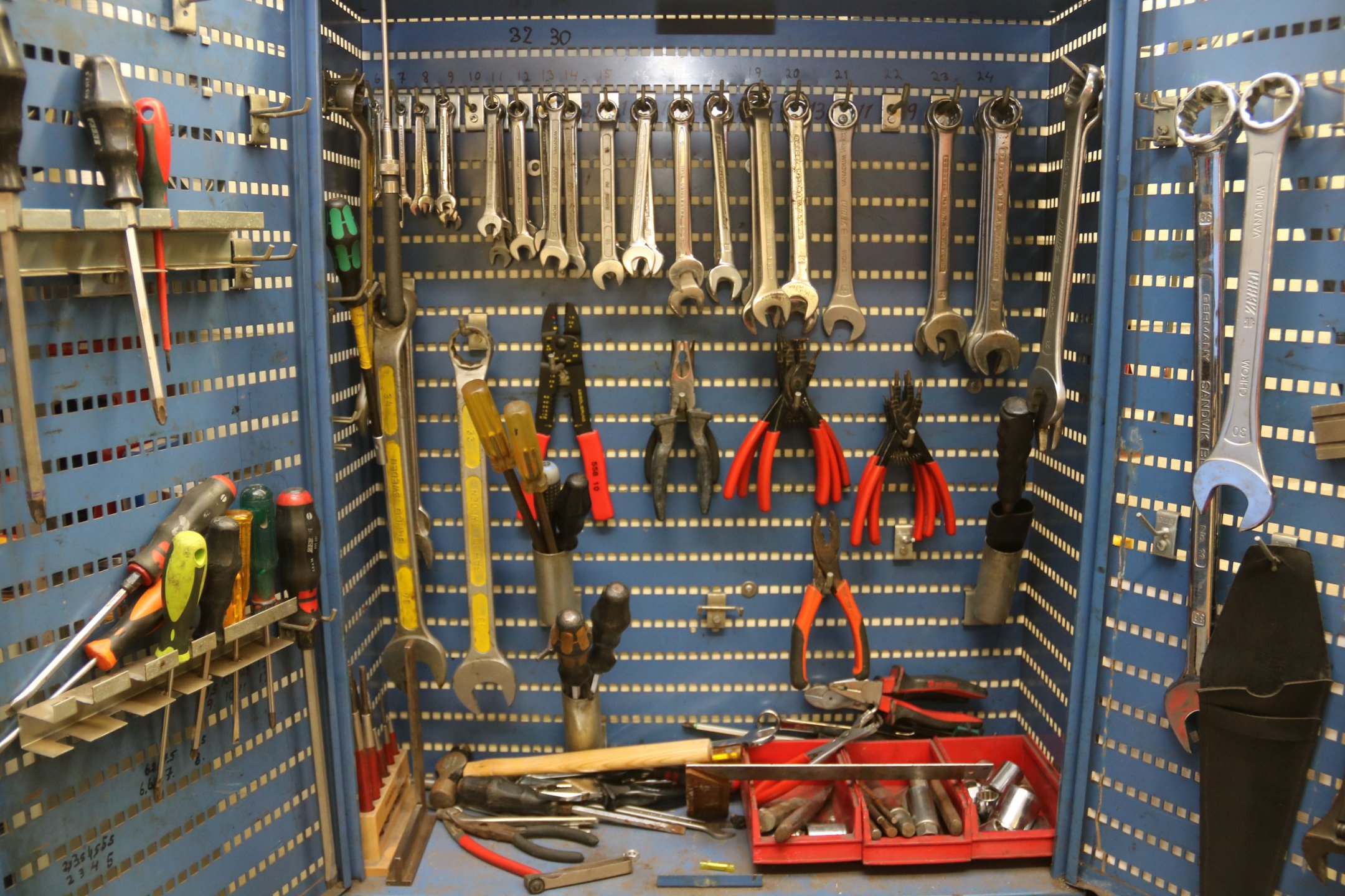 - Kaikki työkalut ja tavarat hyllyissä sisältyvät
