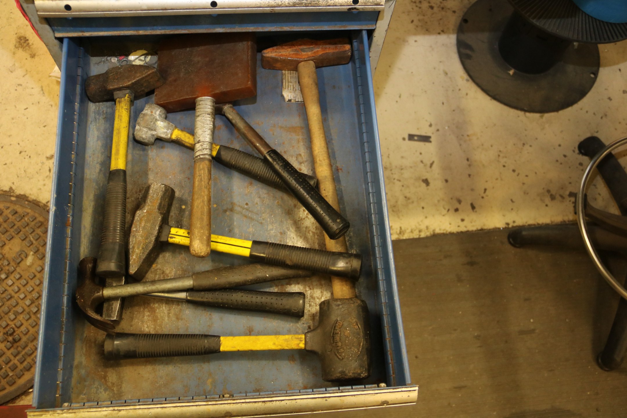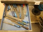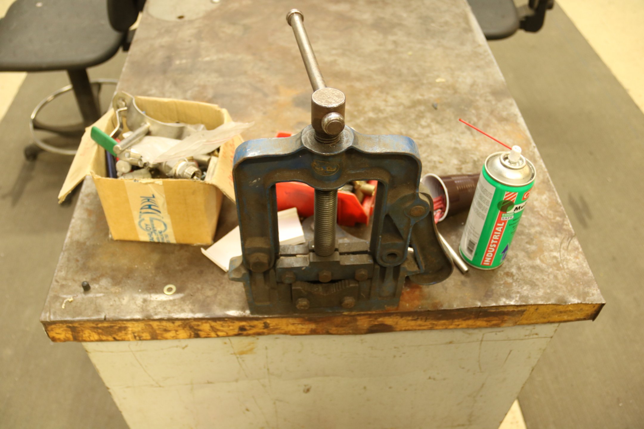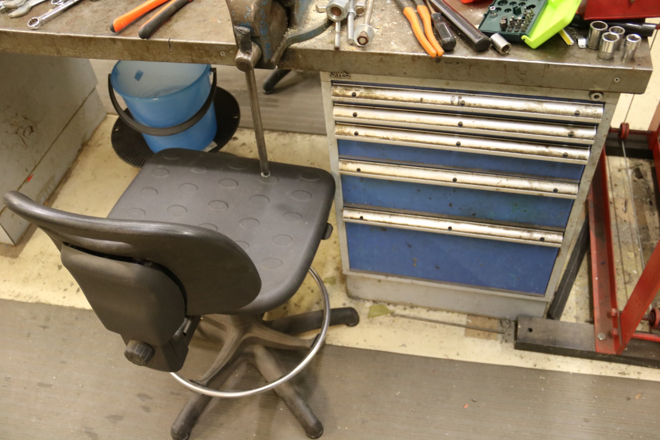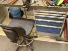 Työpöytä, tuoleja y.m.