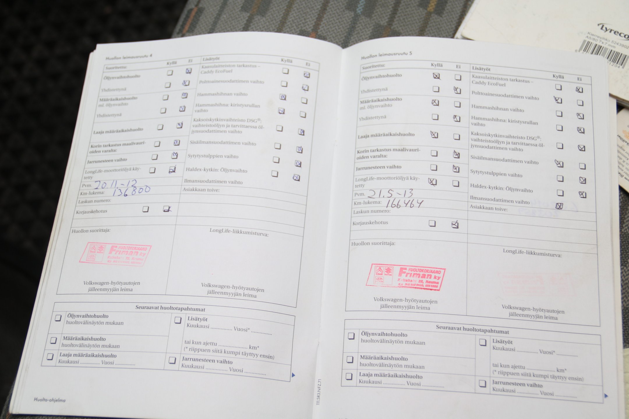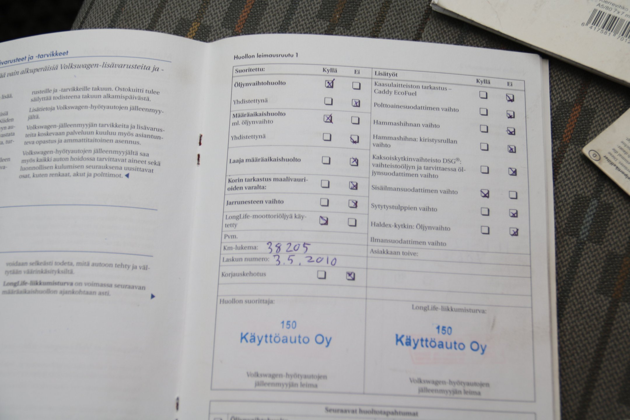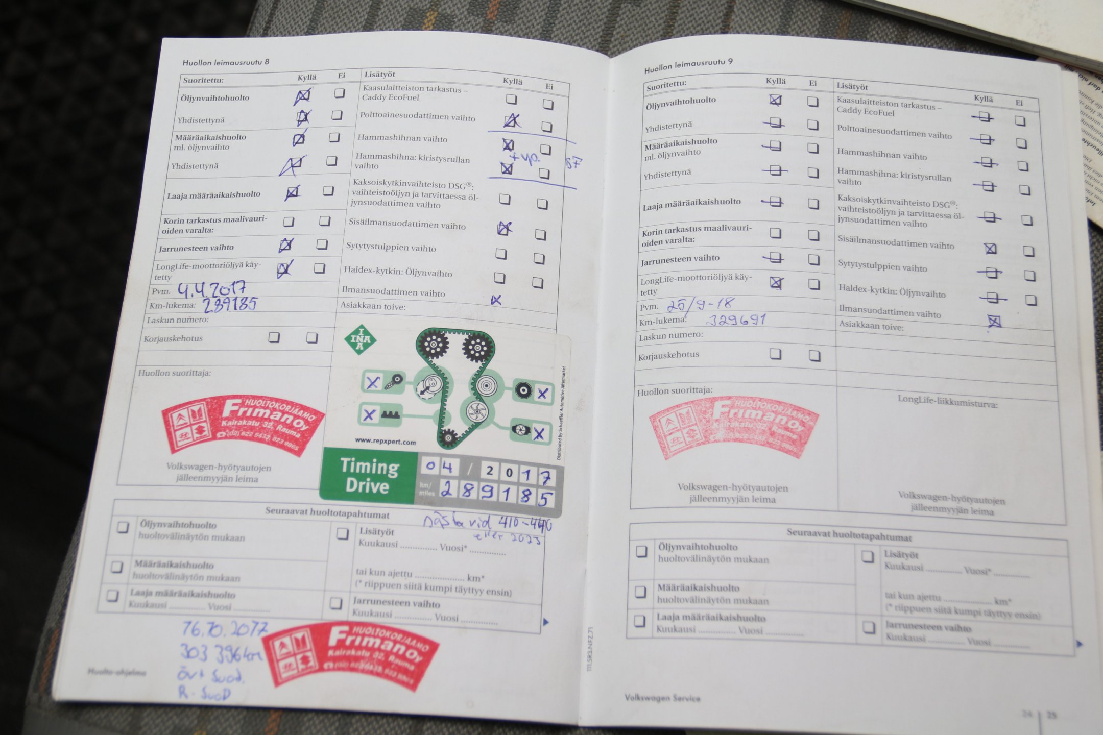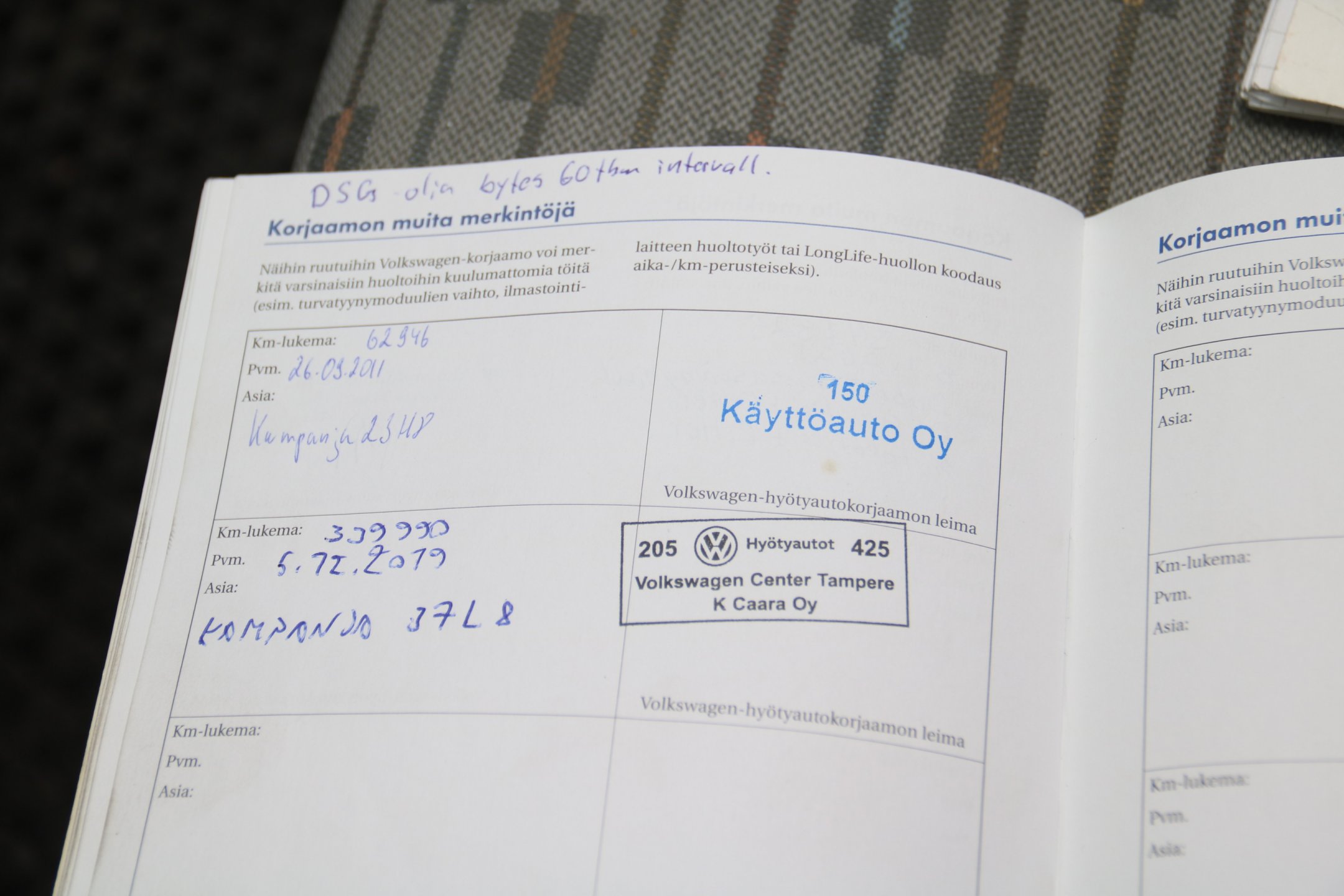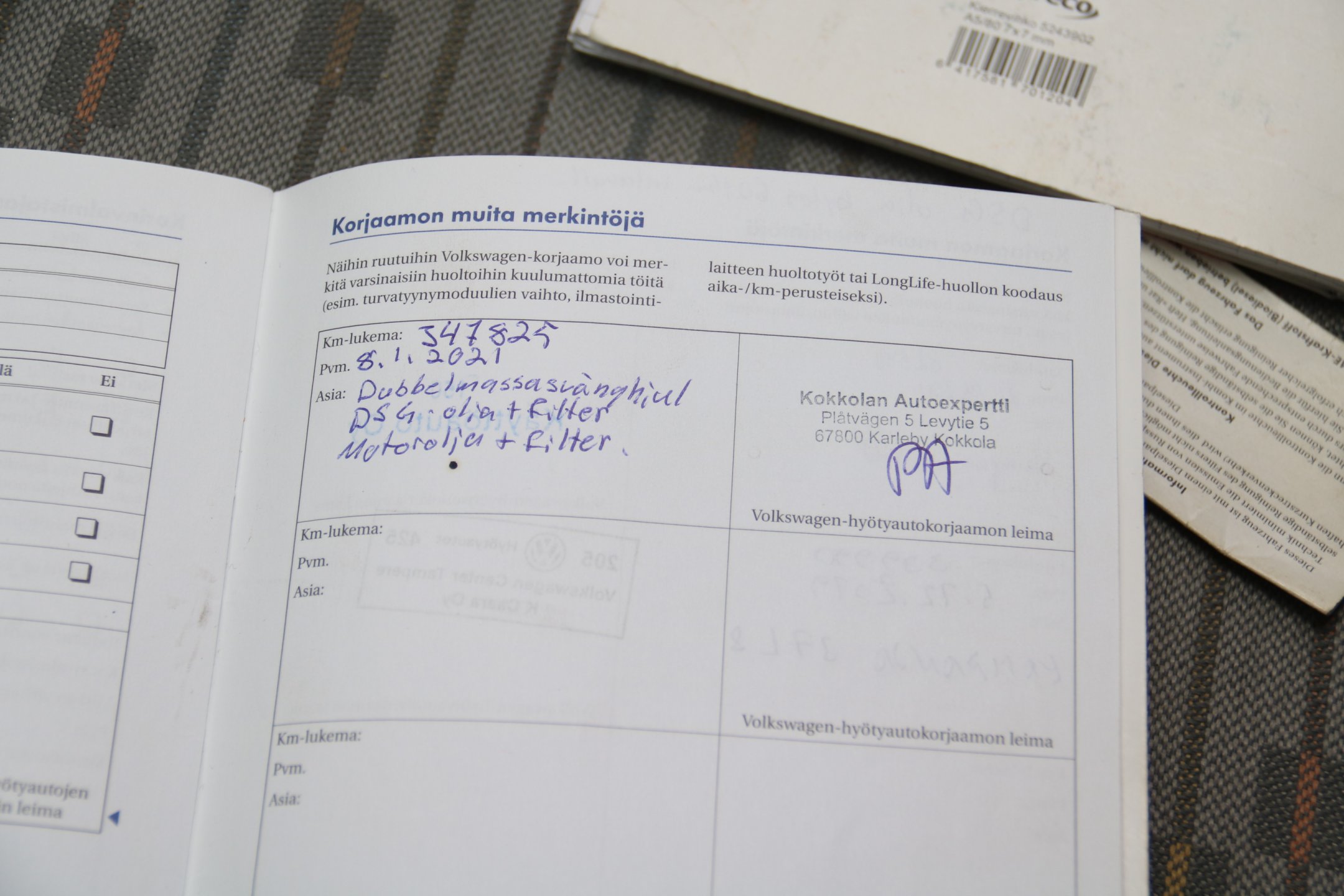 - Kaksoismassavauhtipyörä vaihdettu, katso kuvat huoltokirjasta