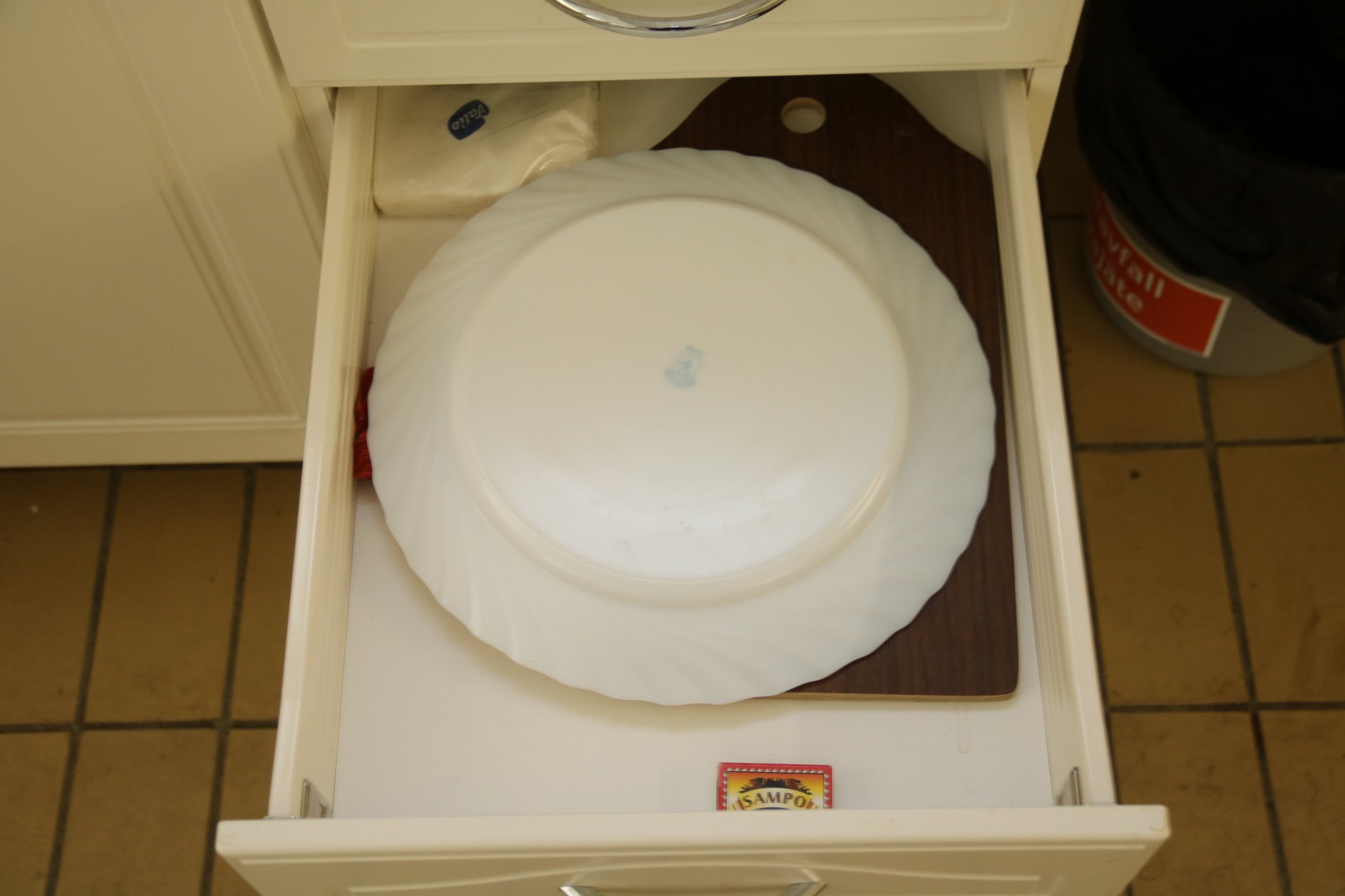 Jääkaappi ja keittiötarvikkeita