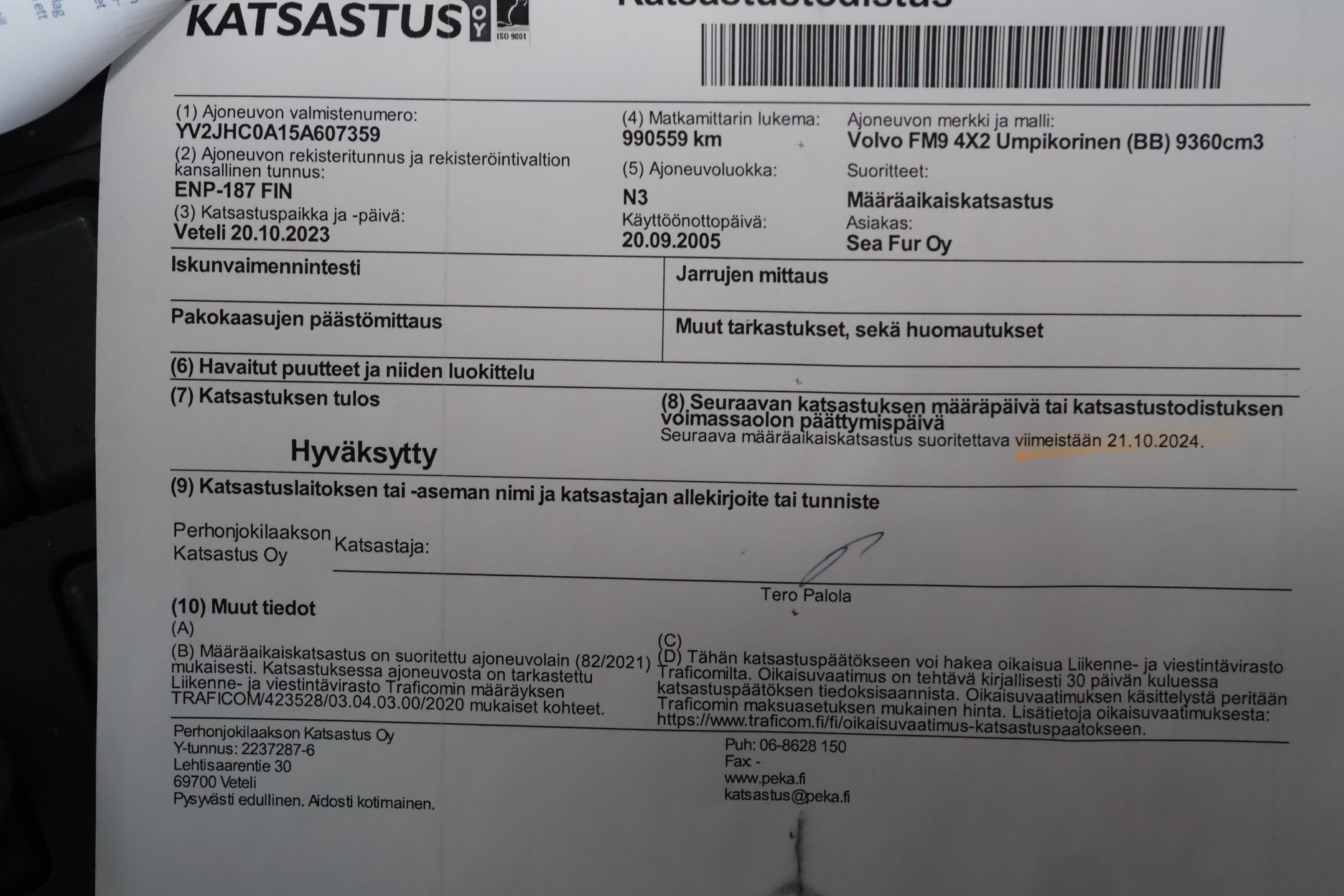 - Viimeinen katsastus tehty 20.10.2023