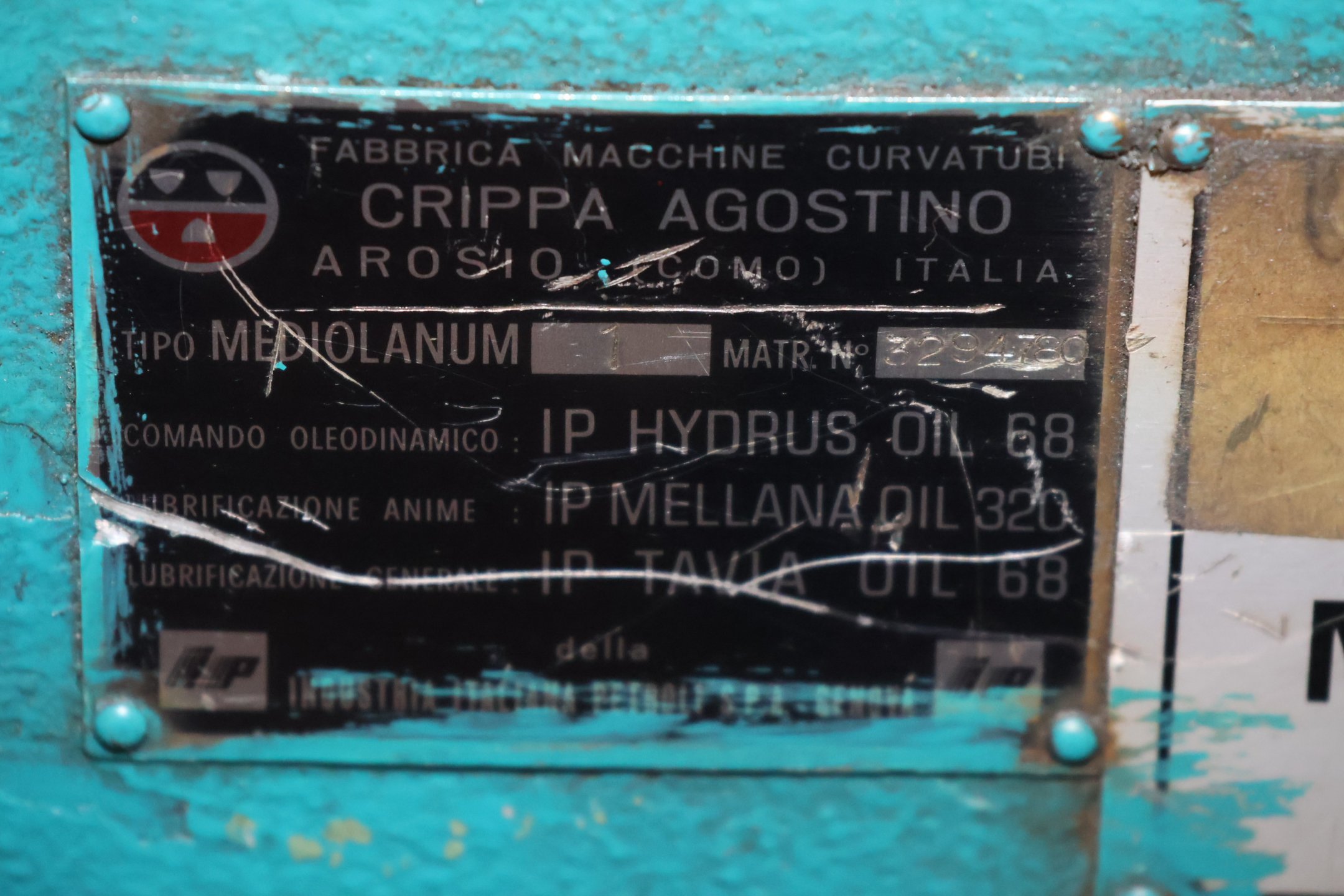 Crippa agostino hydraulinen tuurna putkentaivutuskone + lestit
