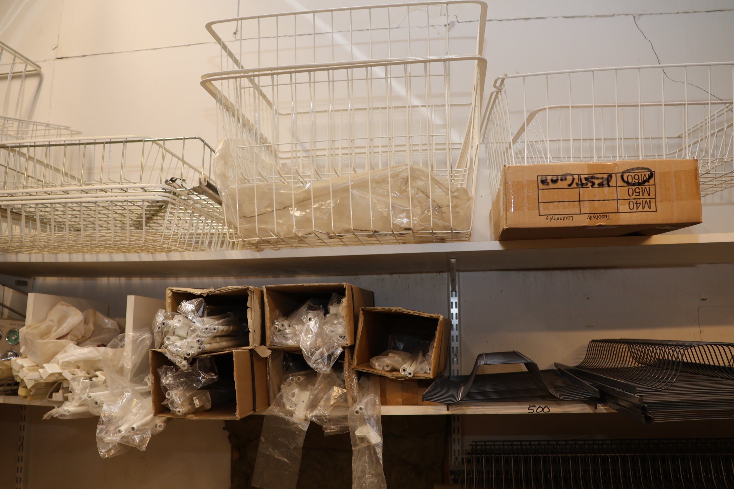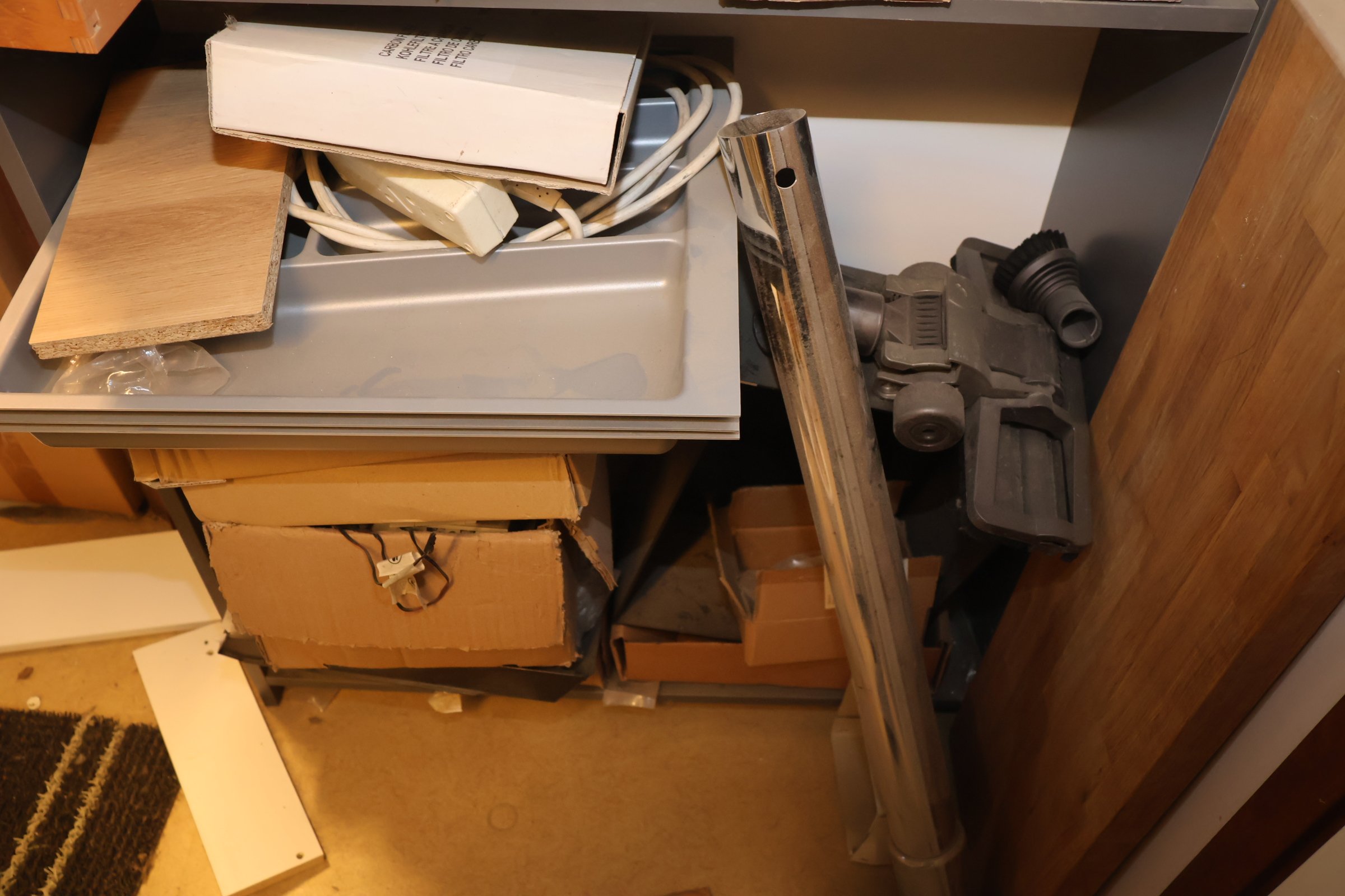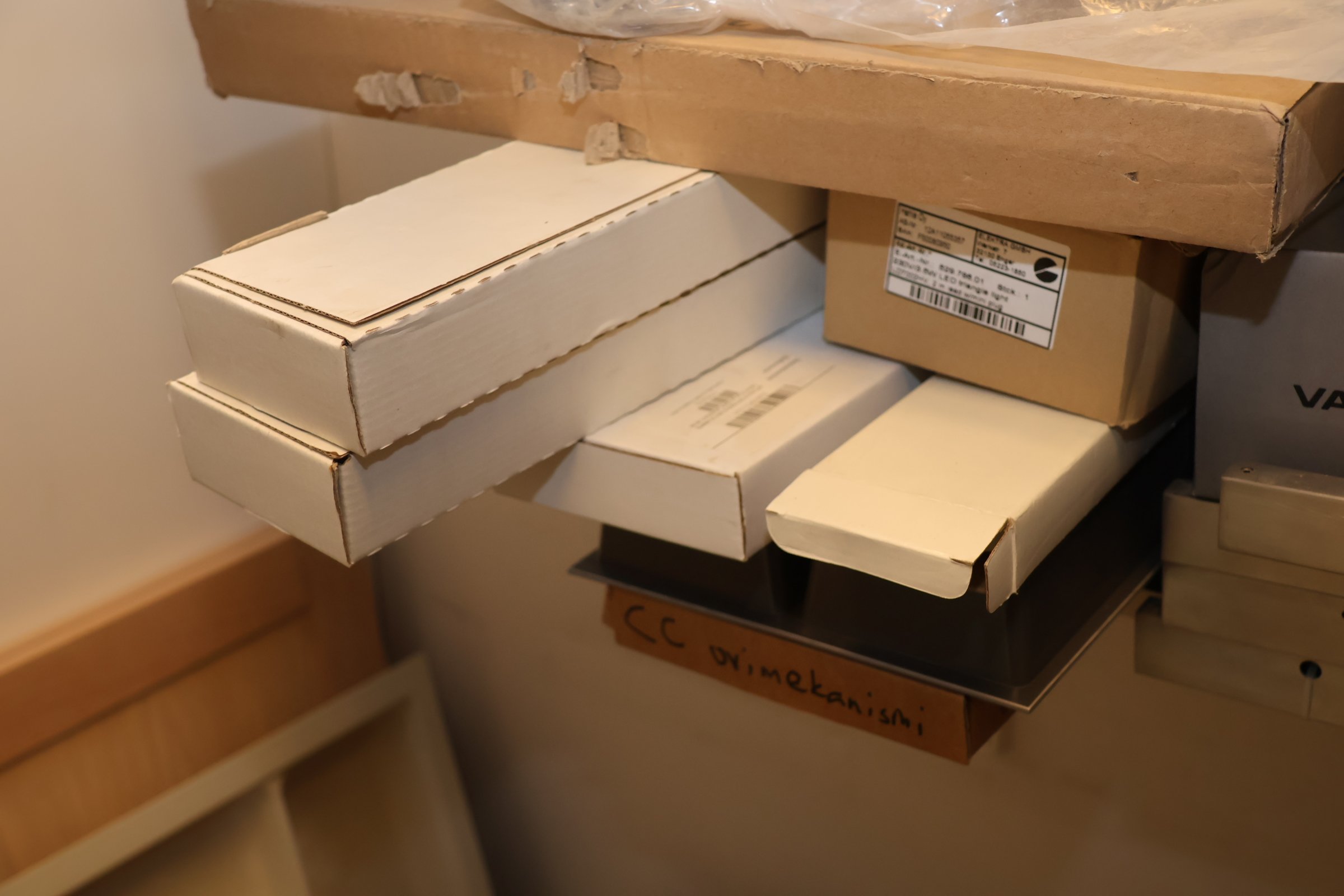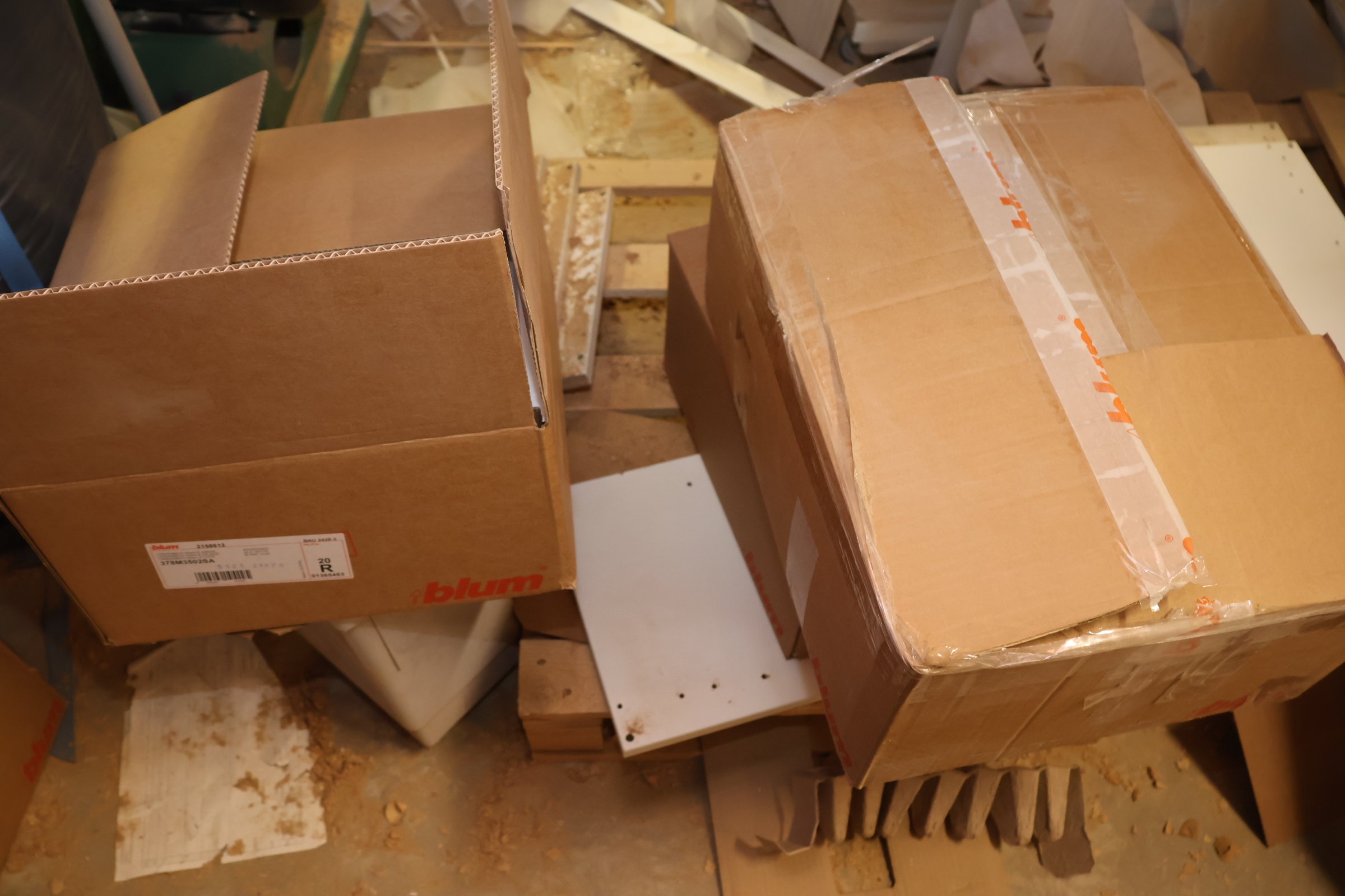 Keittiökaappien saranoita, kiskoja, laatikoita, tarvikkeita y.m.